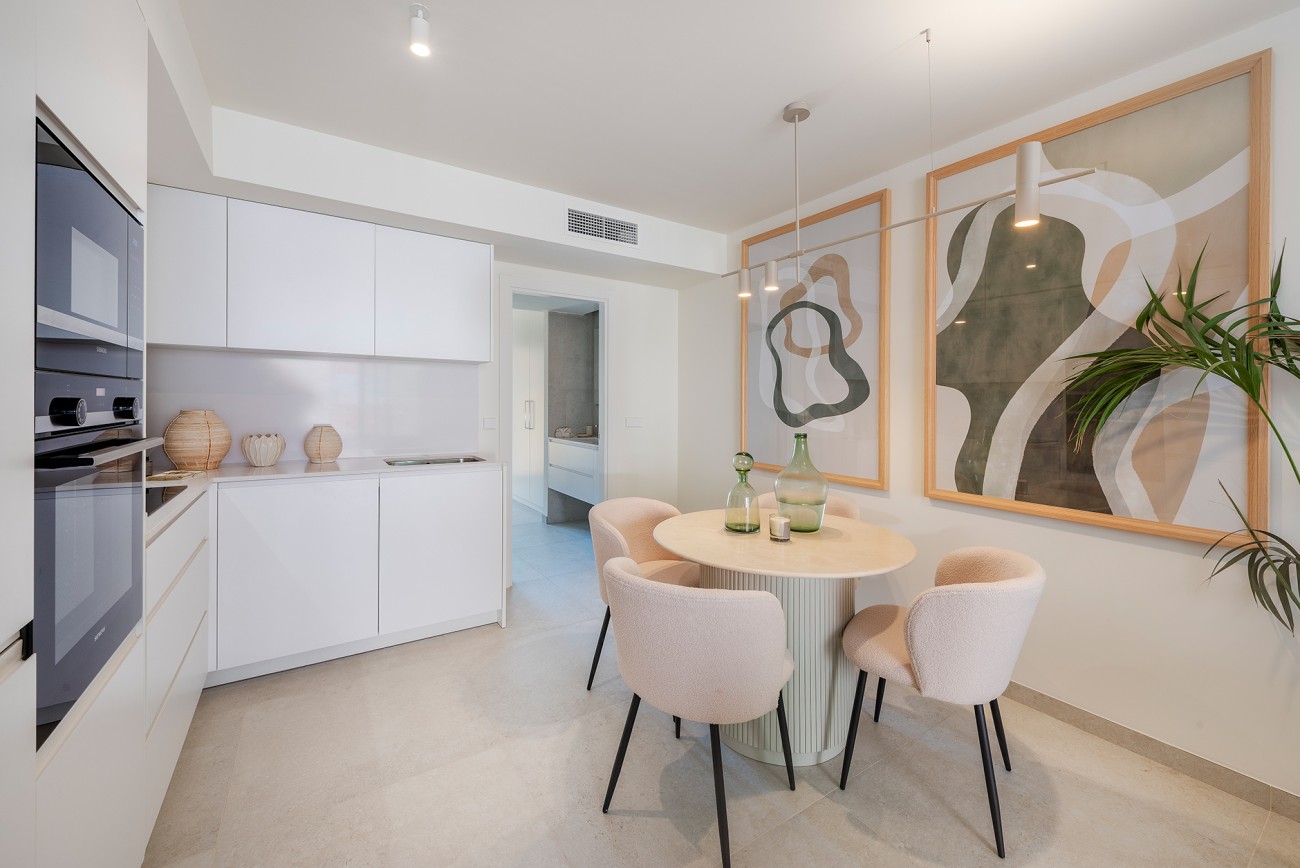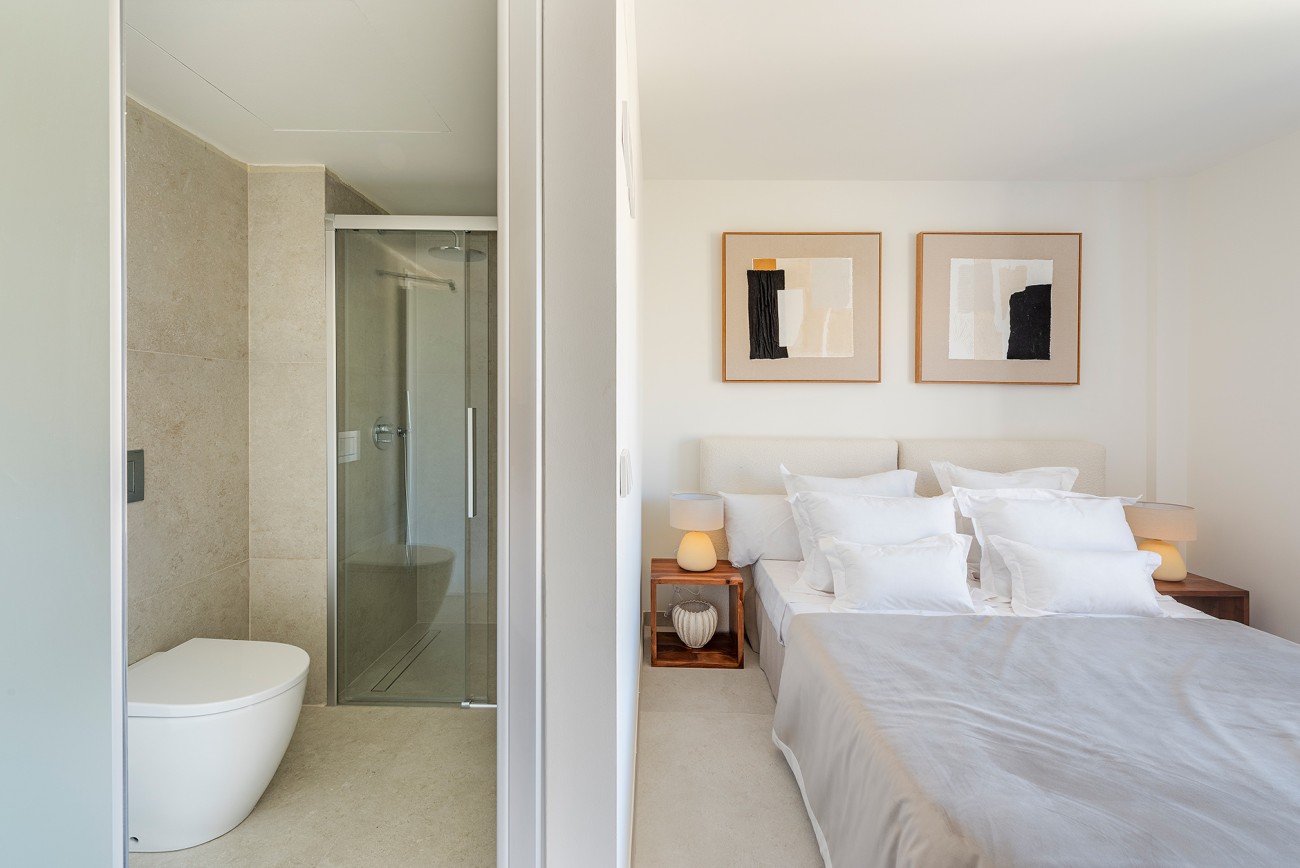 De luxueuze woningen hebben 1, 2 of 3 slaapkamers en ruime woonkamers met open keukens die door de grote ramen naadloos overgaan in de terrassen.
