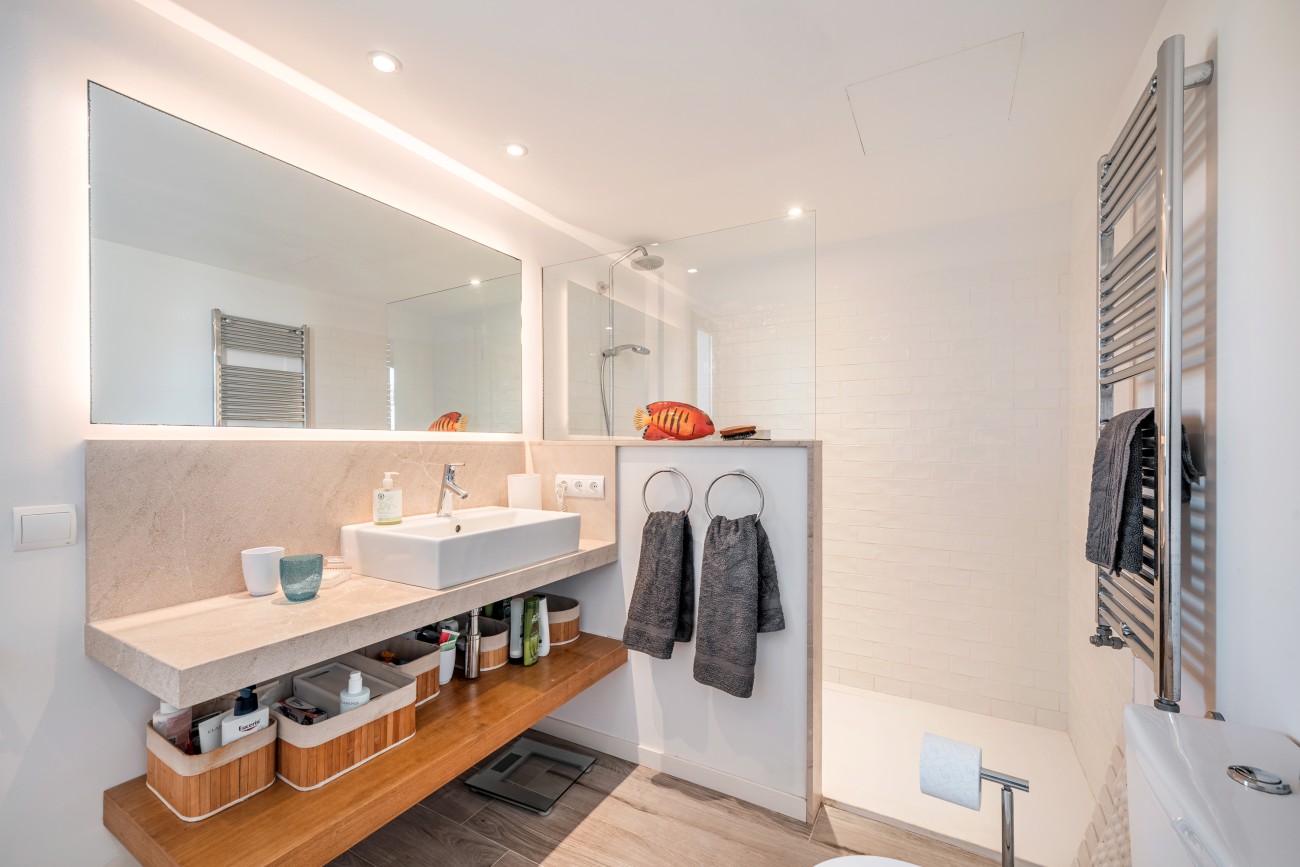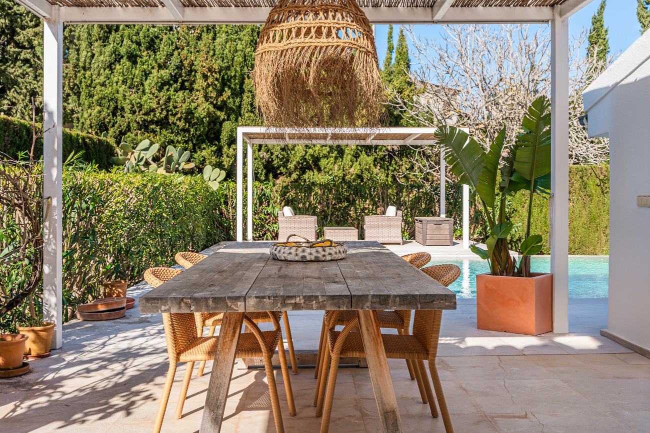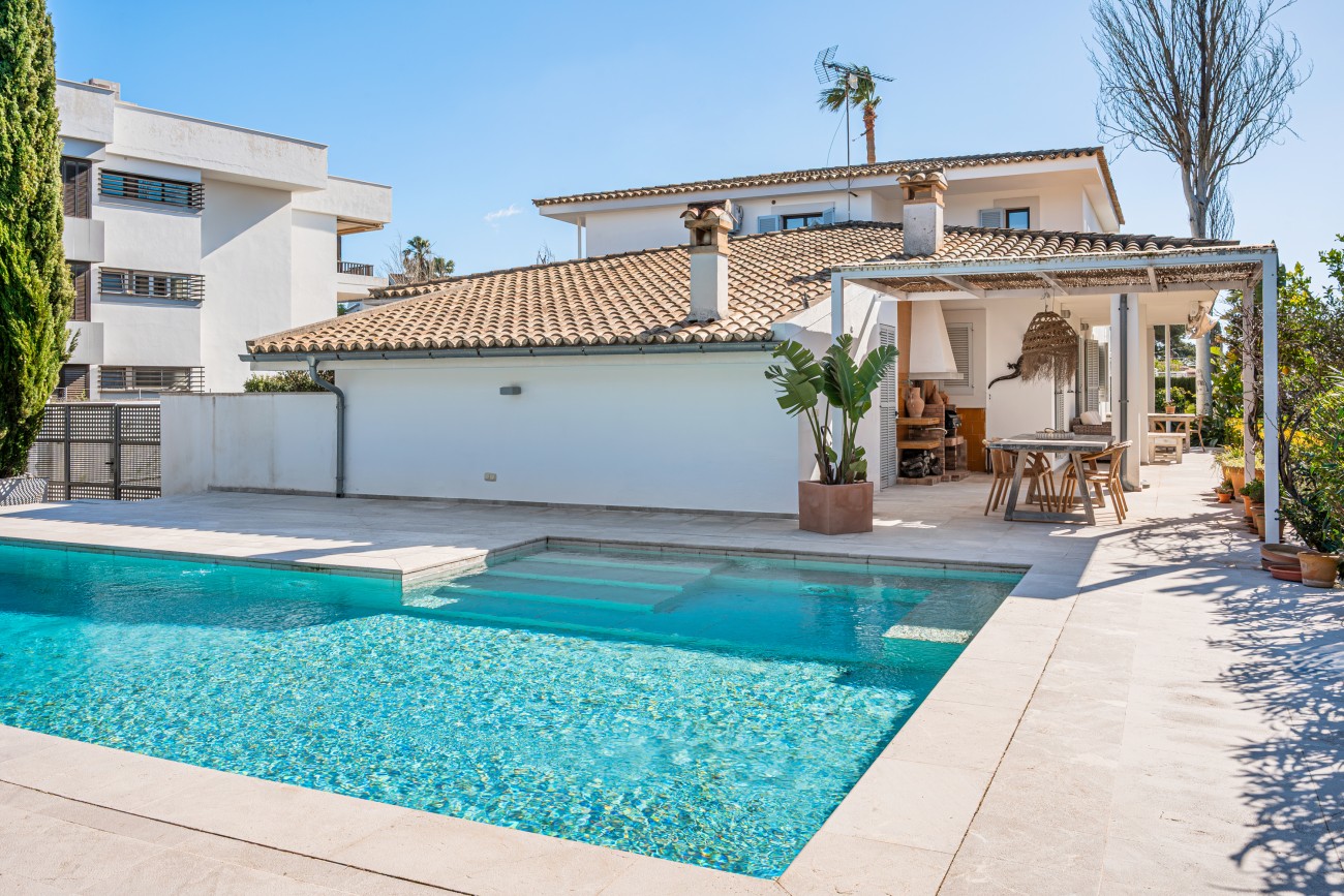 The exterior offers a private garden, multiple terraces for relaxing or dining al fresco, a spacious swimming pool, and a convenient private parking. The outdoor spaces are perfectly designed to enjoy Mallorca’s Mediterranean climate all year round.