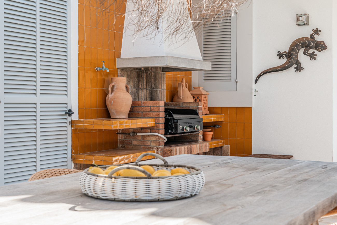 On the ground floor, there are two bright bedrooms and two bathrooms, a generous living and dining area filled with natural light, and a charming kitchen with a dining table, perfect for relaxed family meals or entertaining guests. This level also includes a garage, storage room, covered terrace, barbecue area, and direct access to the large private swimming pool.
