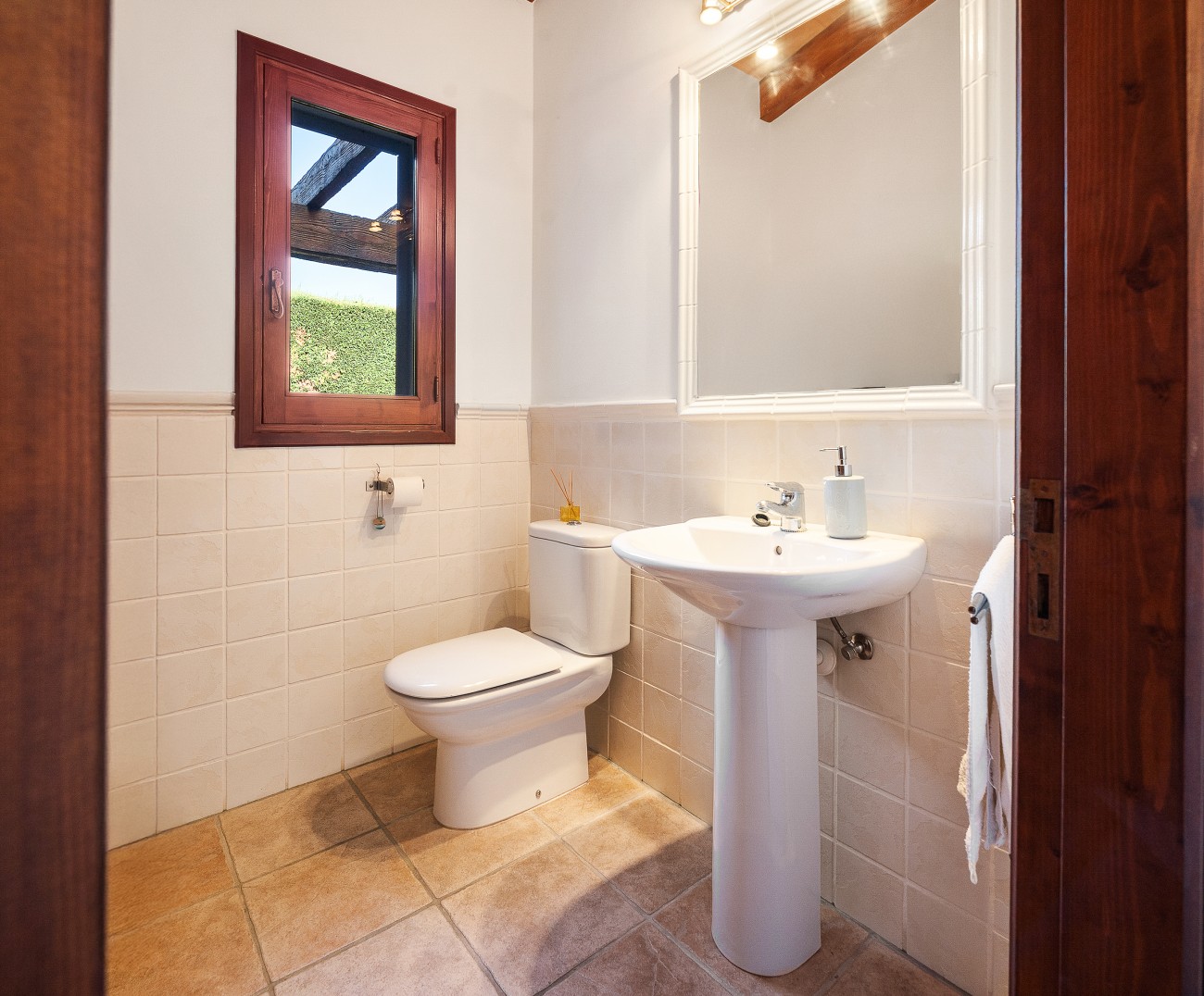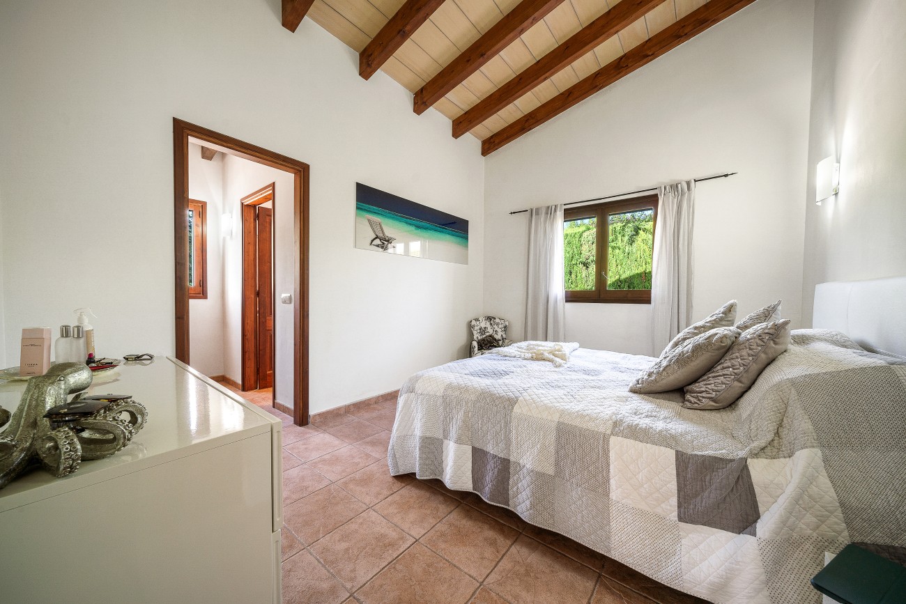Binnen beschikt het huis over drie ruime slaapkamers met eigen badkamer, een gastentoilet en overal airconditioning. Hoge plafonds met houten balken brengen warmte en karakter, terwijl de leefruimtes licht en goed ingedeeld zijn. Een open haard voegt een gezellige noot toe, waardoor het in alle seizoenen een uitnodigend huis is.