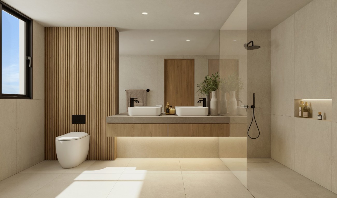 De eerste verdieping heeft drie tweepersoonsslaapkamers (waarvan een met een kleedkamer), en drie en suite badkamers. De slaapkamers hebben ook prachtig uitzicht op zee.