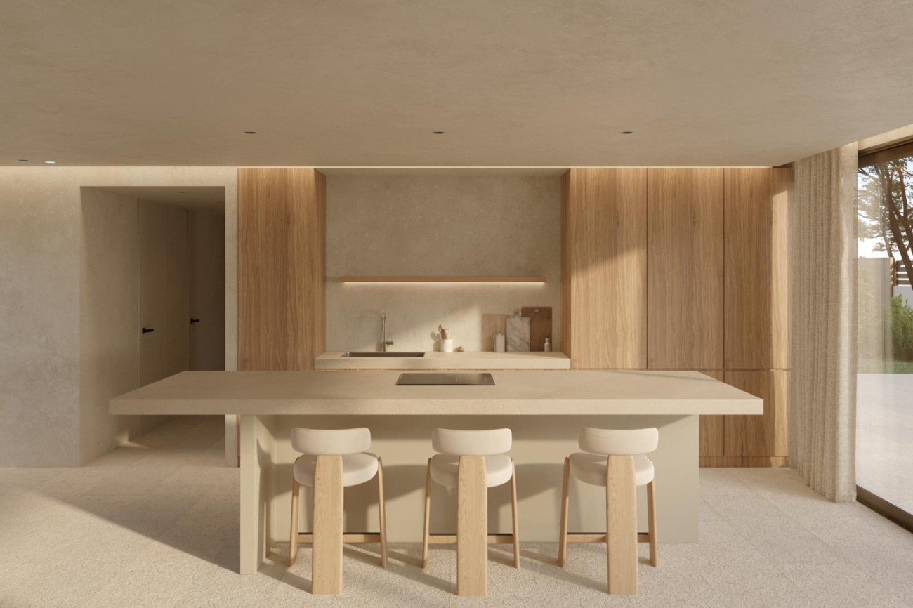 Het huis strekt zich uit over drie verdiepingen en is verbonden met een lift van de kelder naar de eerste verdieping, met vier ruime slaapkamers en vier elegante badkamers. De interieurs worden gedefinieerd door hoogwaardige afwerking, waaronder betegelde vloeren en badkamers van microcement, terwijl de volledig uitgeruste Miele-keuken een vleugje raffinement toevoegt.