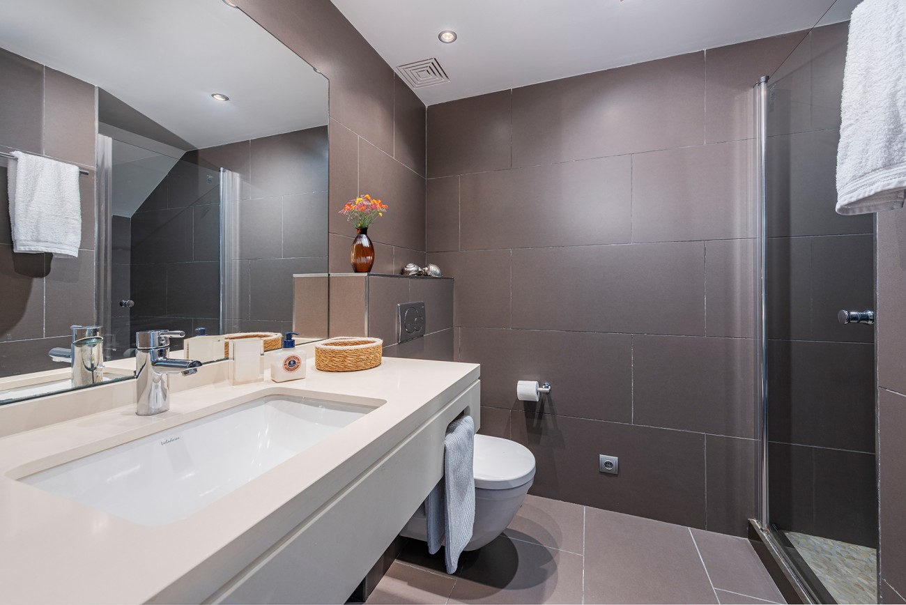 Gebouwd over twee verdiepingen, bestaat de begane grond uit een hal entree met kiezelvloer, een eigen garage, twee slaapkamers en een badkamer, evenals toegang tot de onderste patio.