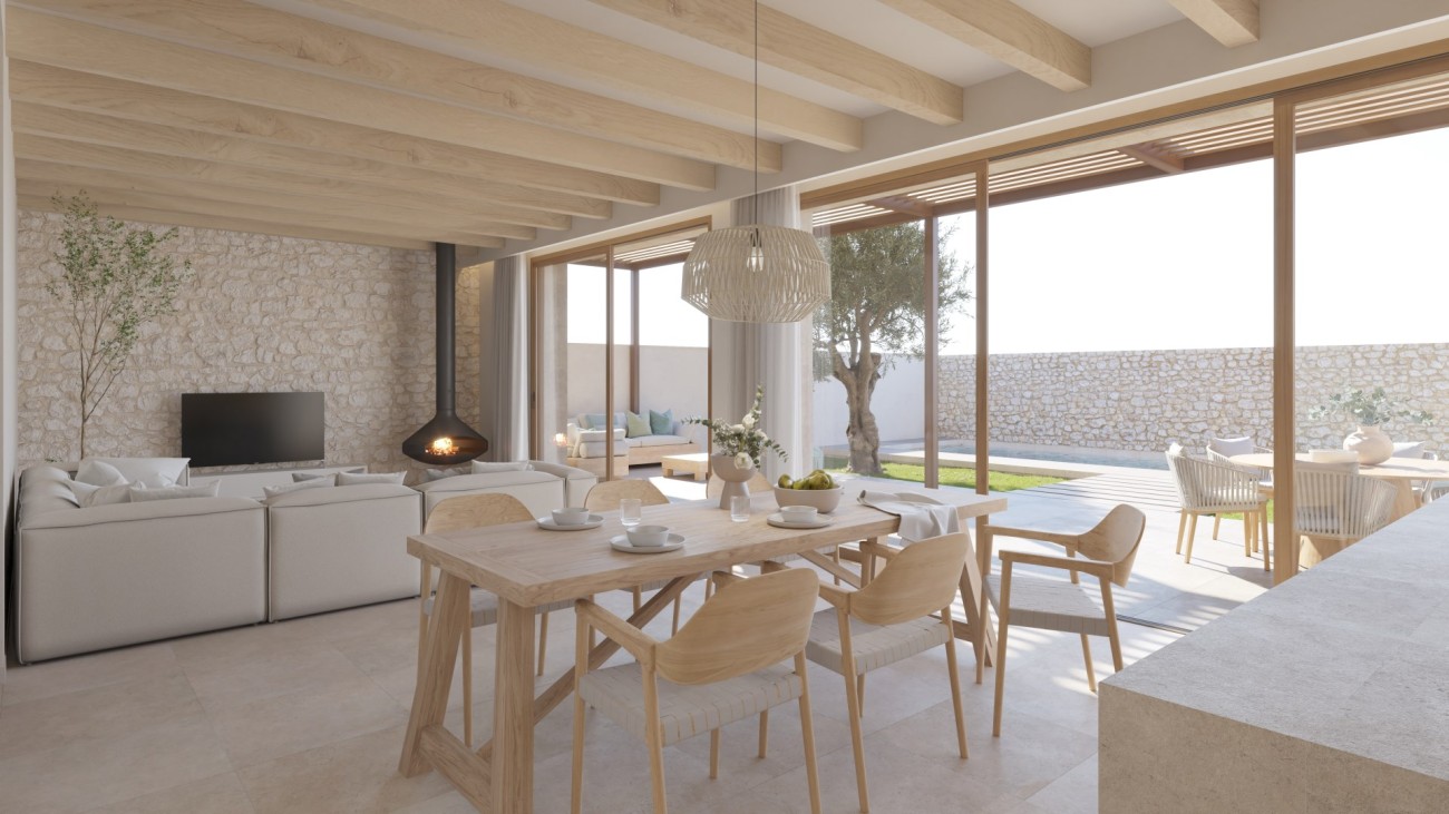 Dit prachtige hoekhuis, dat deel uitmaakt van een exclusief project van drie woningen in het hart van Santanyí, belichaamt de charme van een traditionele finca en biedt tegelijkertijd de hoogste moderne normen. Het huis zal begin 2026 worden opgeleverd en heeft een ligging op het zuiden met fascinerend uitzicht op de oude stad. Doordacht ontworpen met natuursteen en houten vloeren, combineert het naadloos elegantie en comfort en creëert het een verfijnde maar uitnodigende sfeer.