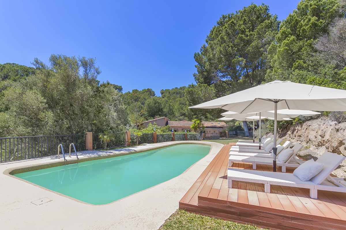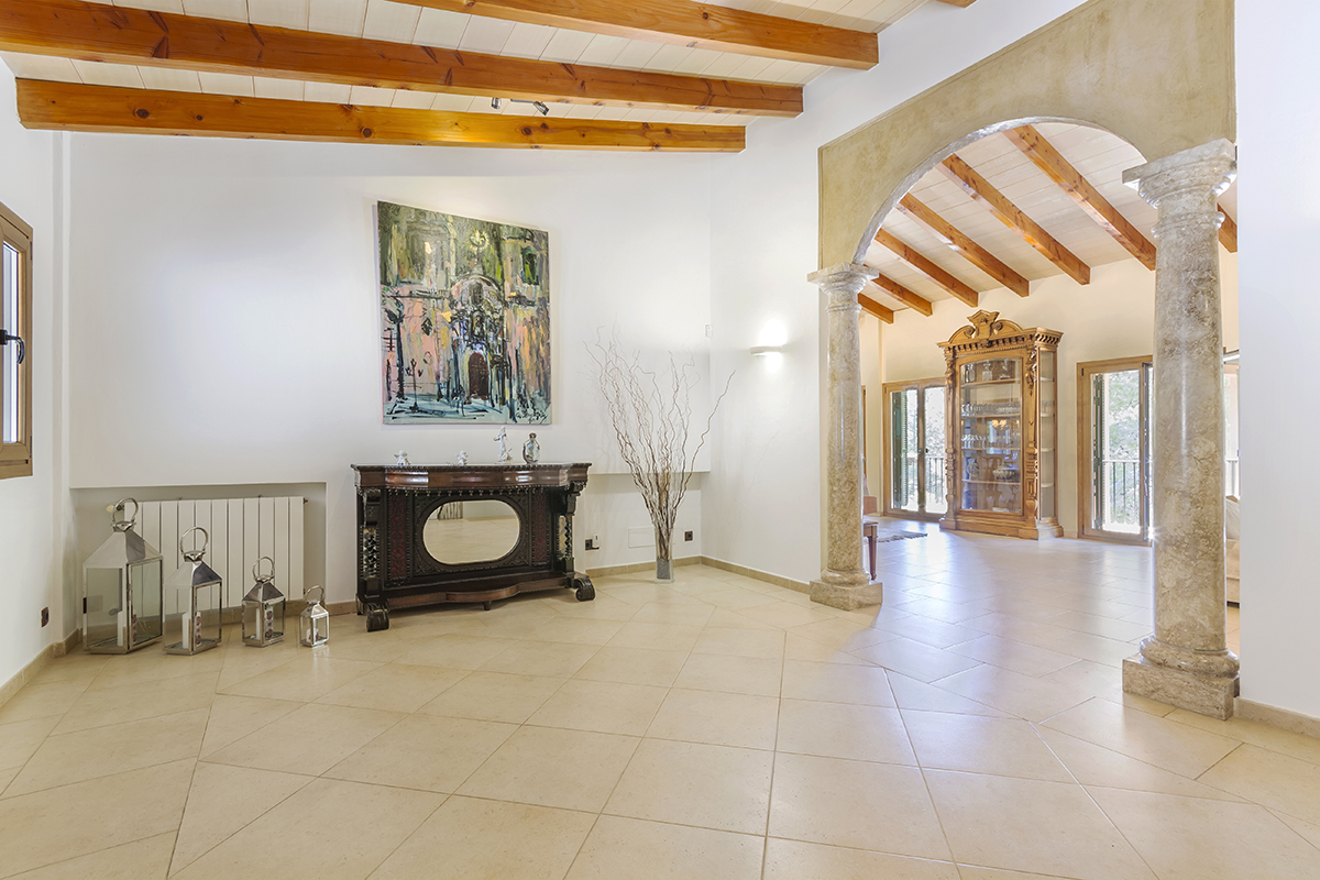 Deze indrukwekkende finca ligt in een afgelegen gebied in Puerto Andratx en biedt de nieuwe eigenaren privacy en ontspanning. Je komt binnen via de hoofdingang en nadat je de heuvel op bent gereden door een prachtige volgroeide tuin bereik je de finca. Er is ook een tweede oprijlaan aan de noordkant van het terrein.