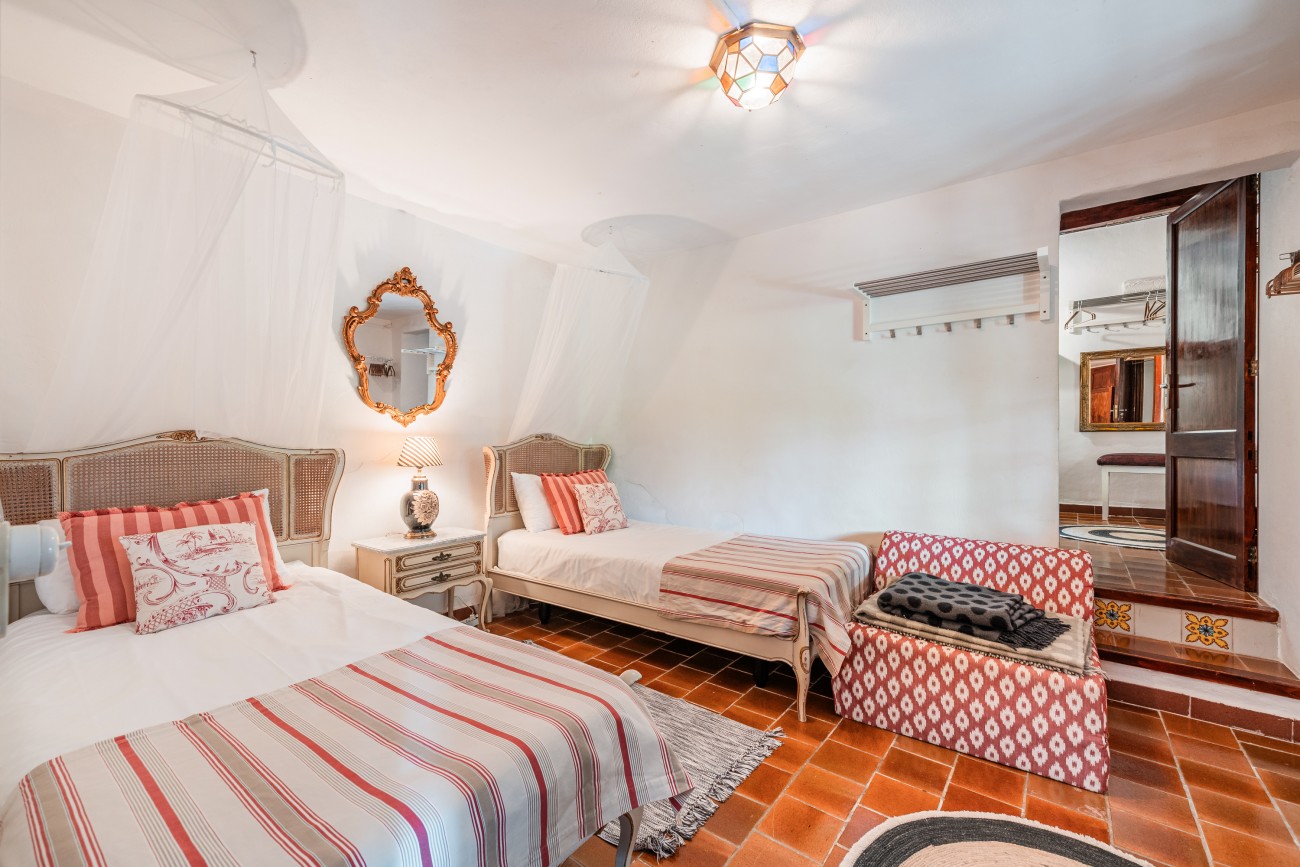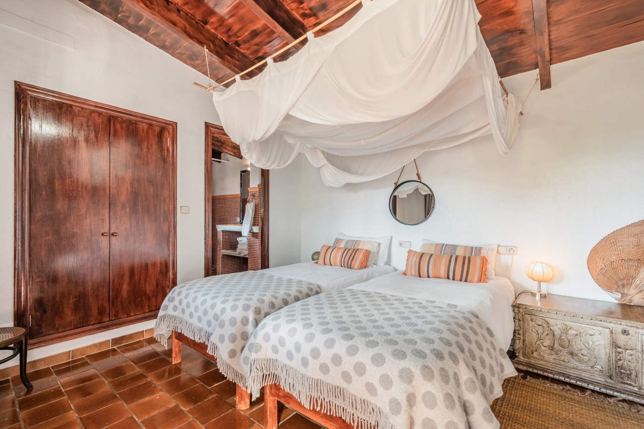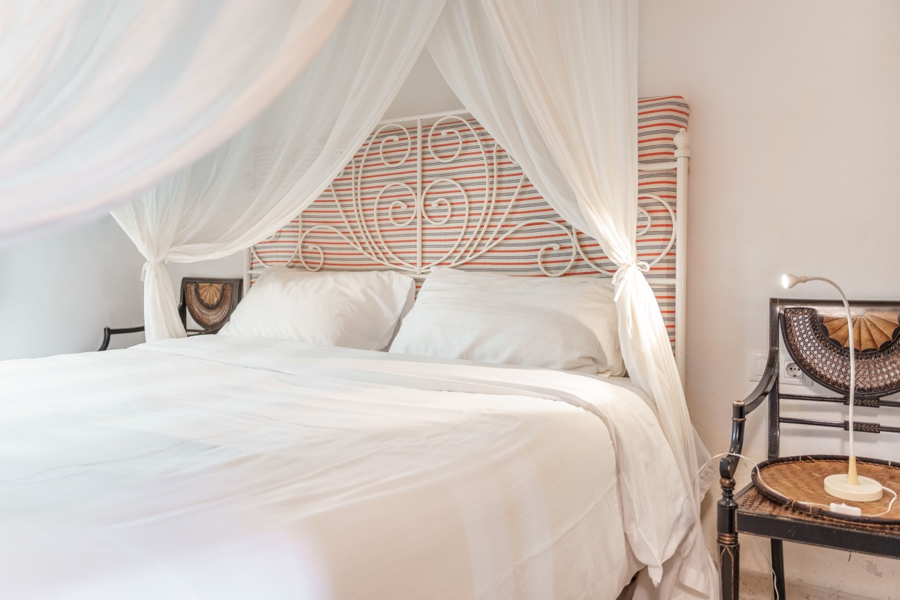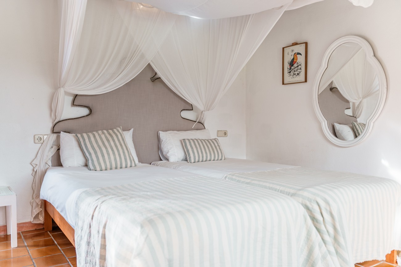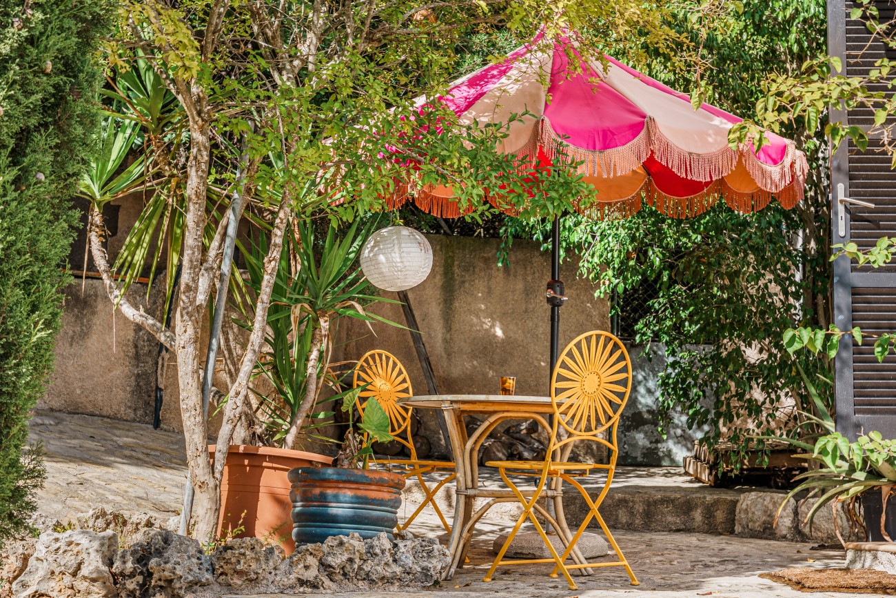 Buiten is de weelderige tuin een oase van palmbomen, fruitbomen en geurige mediterrane planten. Een groot zwembad met een uitgestrekt zonneterras en schaduwrijke chill-out plekken nodigt uit tot lange middagen van ontspanning. Voor wellnessmomenten zijn er een yogaterras en rustige terrassen verspreid over het landgoed, waar je eindeloos kunt ontspannen.