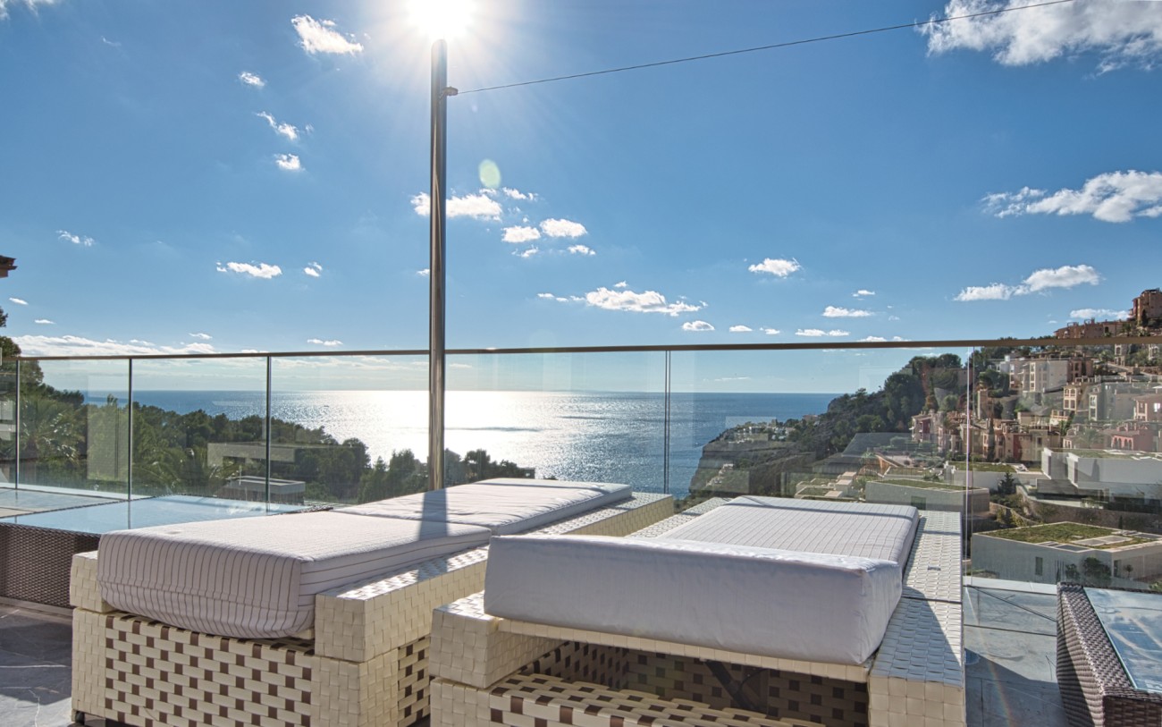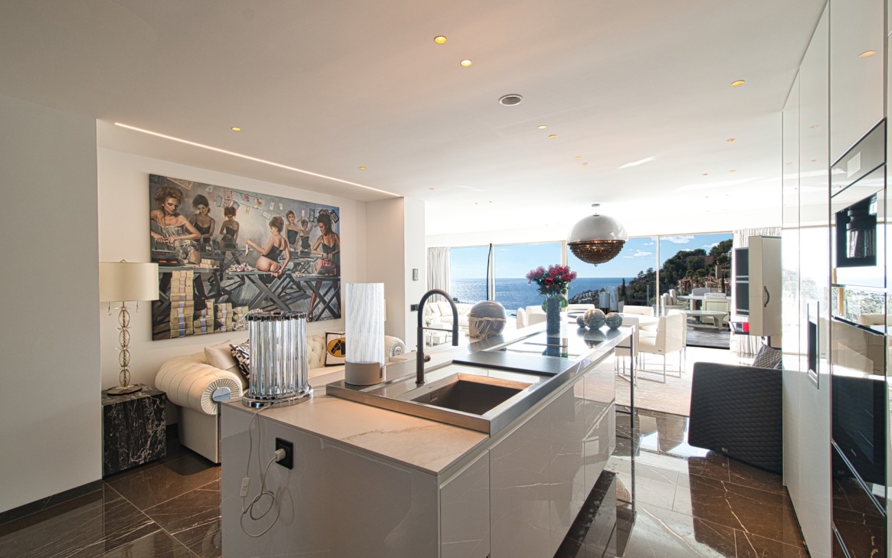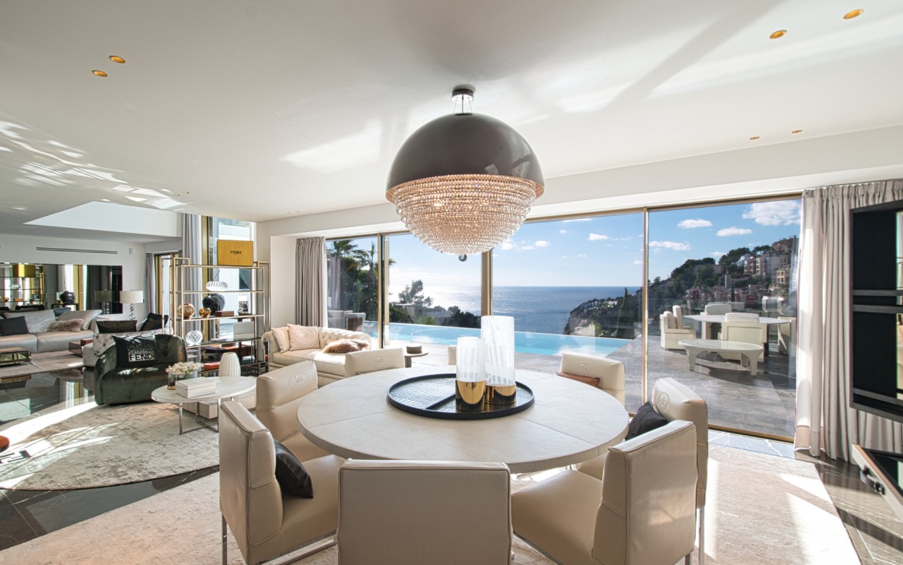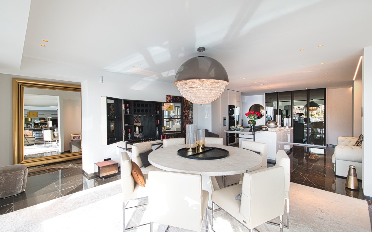 Met een oppervlakte van 532 m² en drie verdiepingen combineert deze woning eigentijds design met tijdloze elegantie. De belangrijkste woonverdieping baadt in natuurlijk licht en beschikt over een verfijnde Poliform designkeuken, een open woonkamer en directe toegang tot een terras met een overloopzwembad dat uitkijkt over de glinsterende Middellandse Zee.
