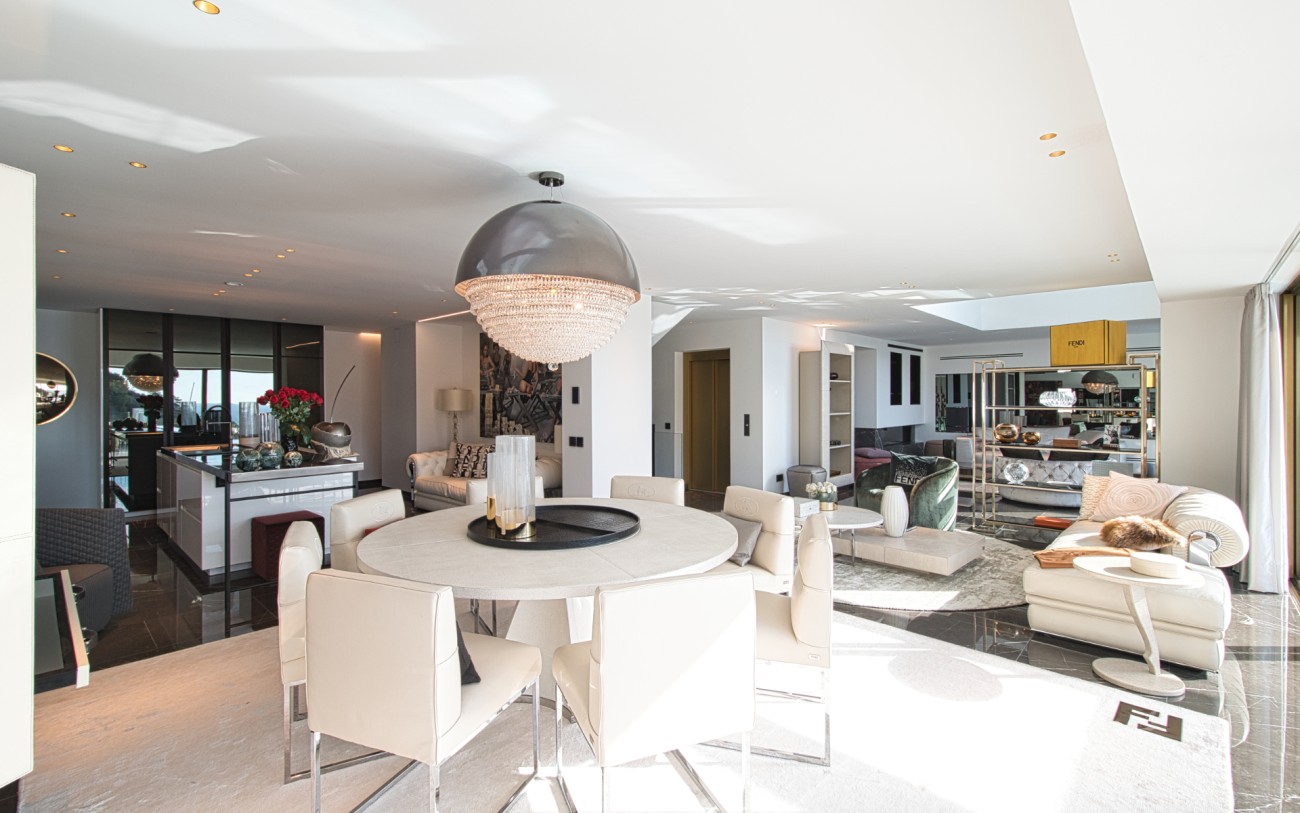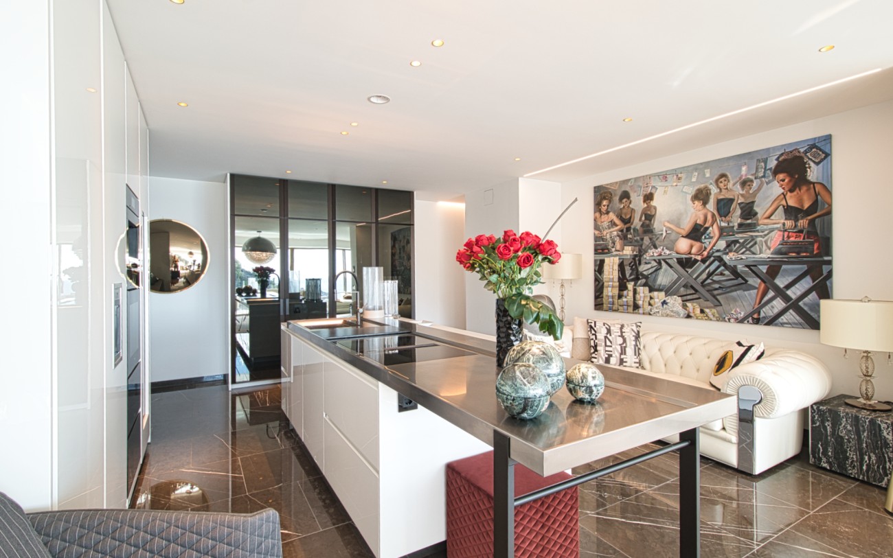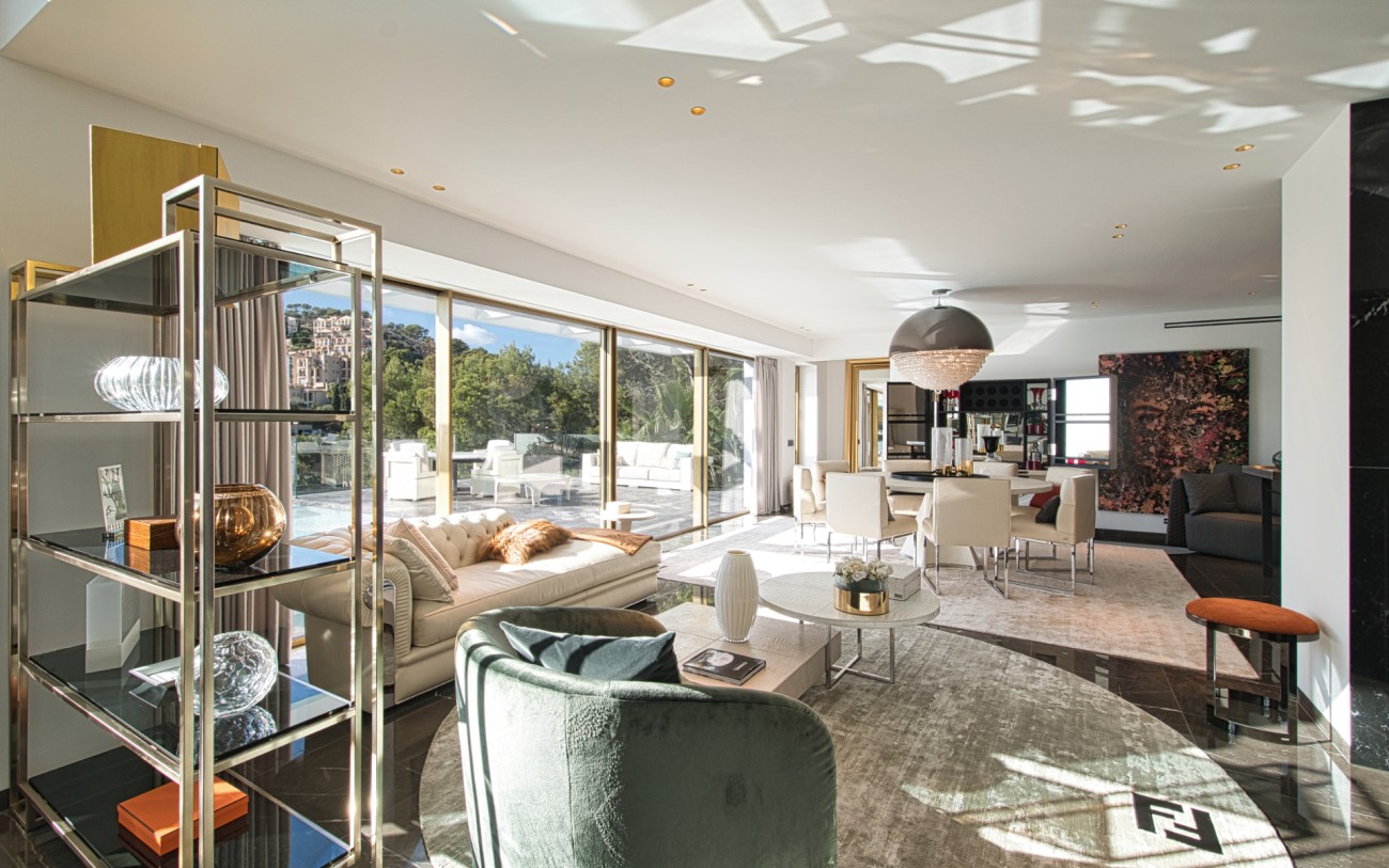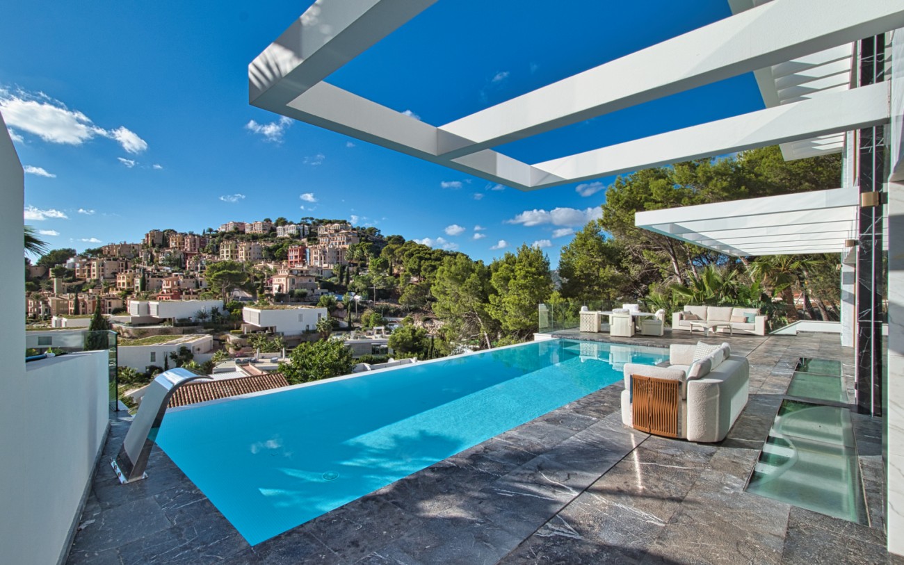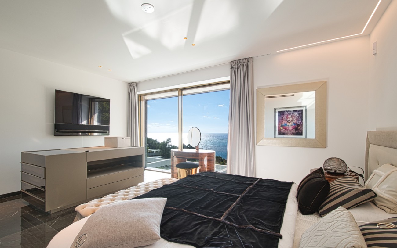 Met een oppervlakte van 532 m² en drie verdiepingen combineert deze woning eigentijds design met tijdloze elegantie. De belangrijkste woonverdieping baadt in natuurlijk licht en beschikt over een verfijnde Poliform designkeuken, een open woonkamer en directe toegang tot een terras met een overloopzwembad dat uitkijkt over de glinsterende Middellandse Zee.