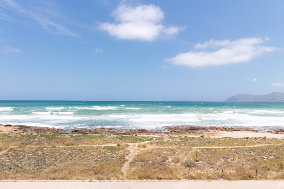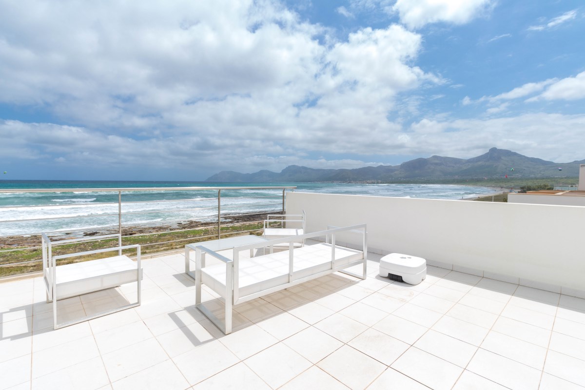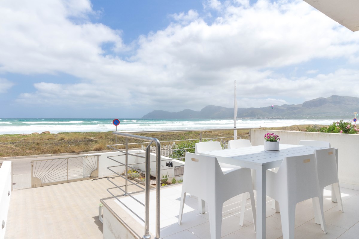 Deze verbazingwekkende halfvrijstaande villa heeft een benijdenswaardige locatie aan zee op een van de beroemdste surfstranden van Mallorca en beschikt over een vakantieverhuurvergunning