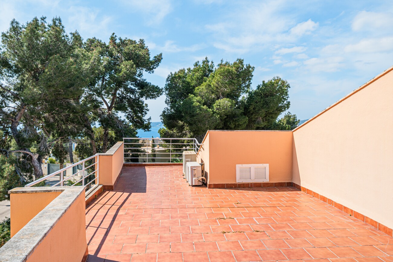 Situated in the sought-after residential area Portals Nous, this semi-detached house forms part of a small and quiet community of just six homes. Set across three levels and facing south, the property enjoys pleasant views over the gardens and communal swimming pool. While the house would benefit from some updating, it offers an excellent opportunity to create a comfortable family residence in one of the island’s most desirable coastal locations. Its peaceful setting and generous outdoor spaces provide a relaxed lifestyle within easy reach of local amenities.