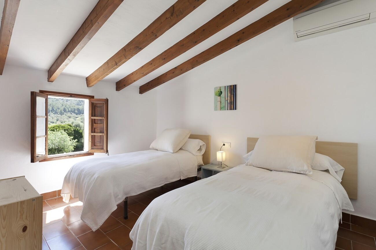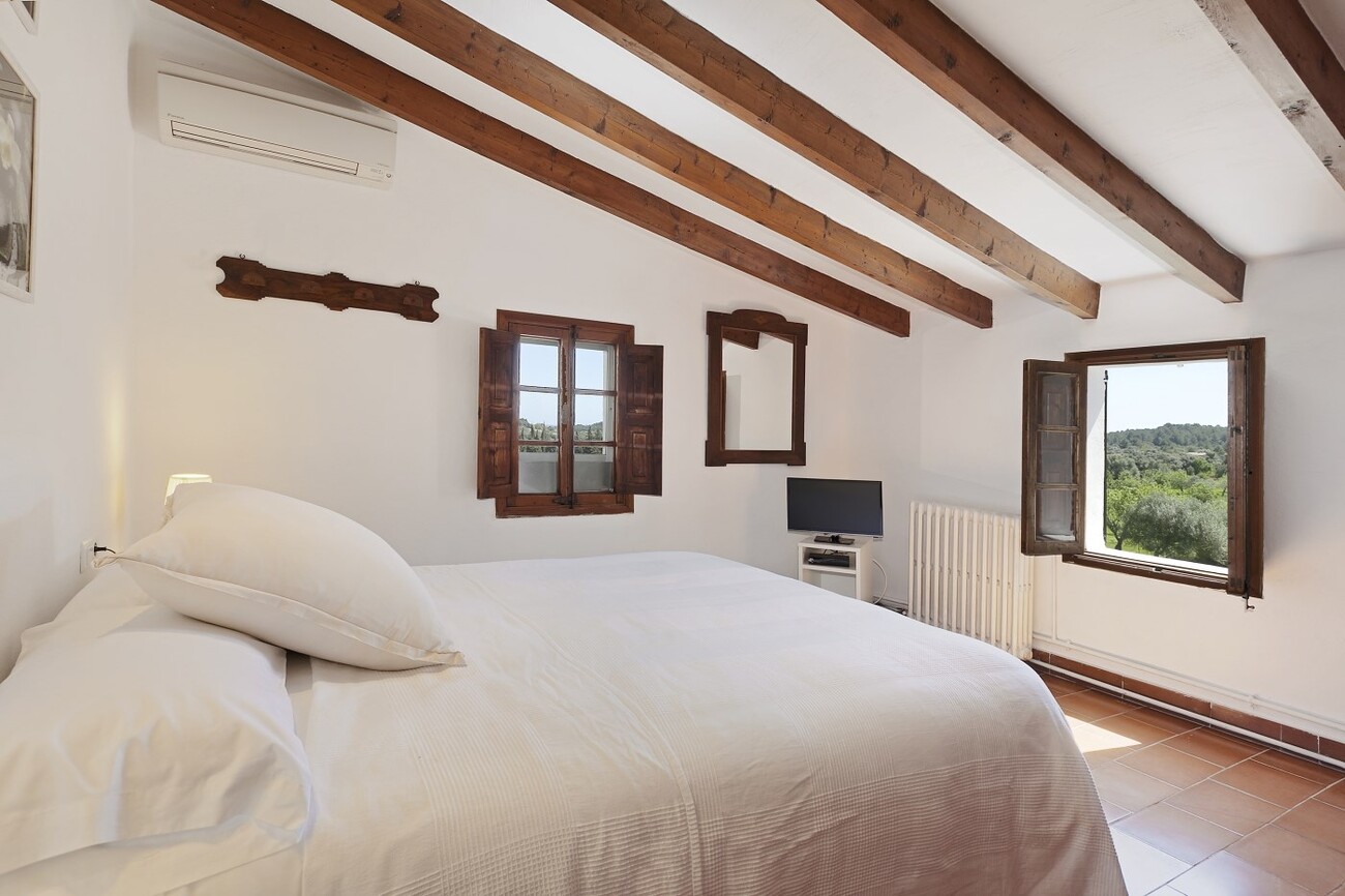 The house is set on over 20,000 square metres of private grounds and gardens. The large swimming pool is surrounded by lawns on both sides and has wonderful views to the valley. The finca has six bedrooms, all with air conditioning. There are three fully equipped bathrooms and an outside toilet with a shower. The kitchen, the dining room with seating for 12 people and the living room are very spacious andfull of natural light.