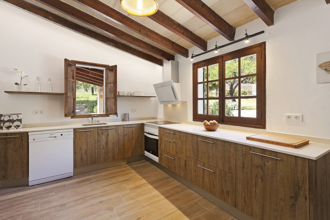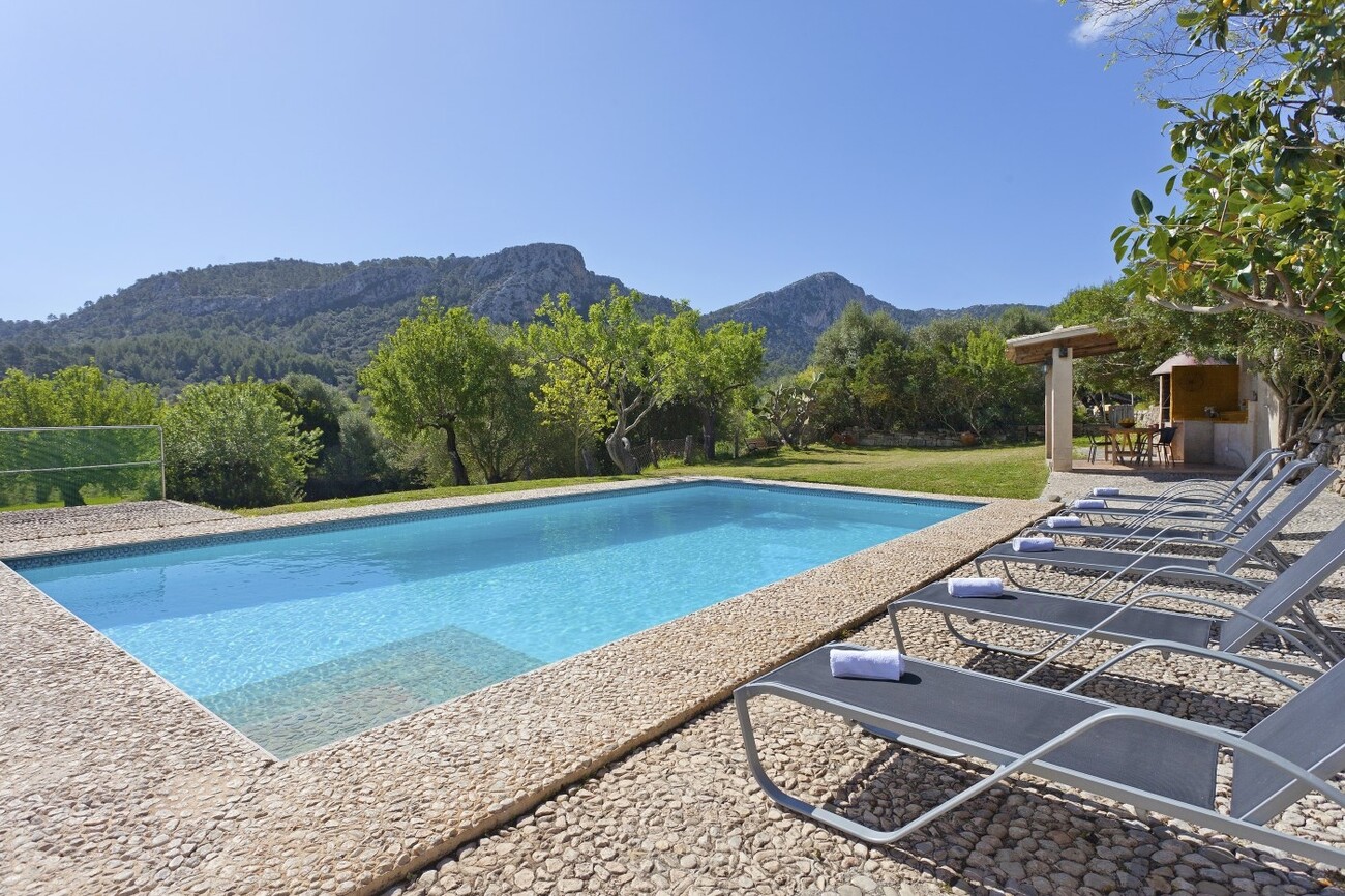 This large Mallorcan villa in the peaceful rural area of the Vall de Colonya, with stunning countryside views is only two kilometres from the old town of Pollensa. It is surrounded by beautiful, tropical gardens full of Mediterranean plants and fruit trees, making it a wonderfully relaxing house for a family holiday, a special feature is the outdoor barbecue casita kitchen.