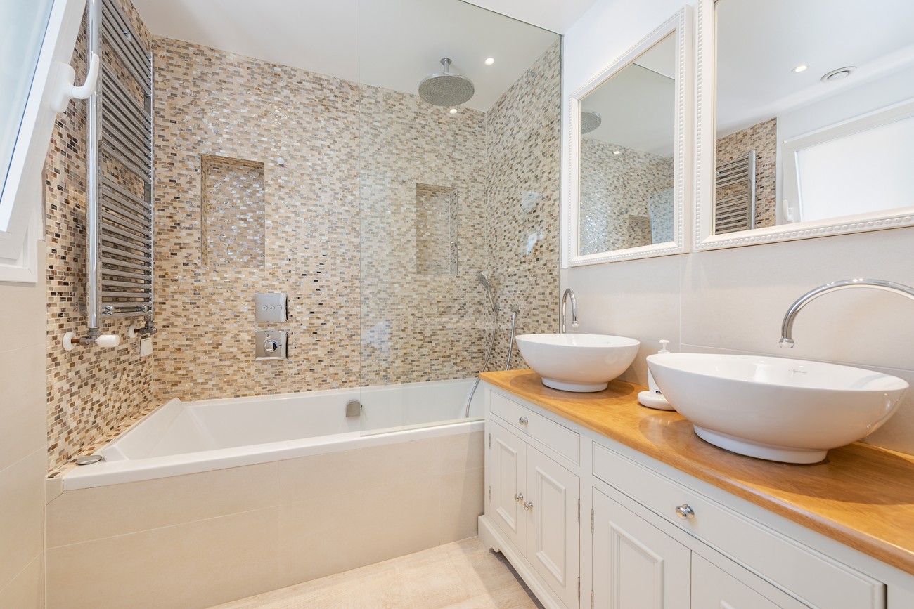 Het appartement heeft een handige lift en eenmaal binnen vind je een hal, vier tweepersoonsslaapkamers, vier badkamers en een grote open ruimte met een moderne inbouwkeuken met kookeiland, een eethoek, een tv-hoek en een woonkamer met open haard.