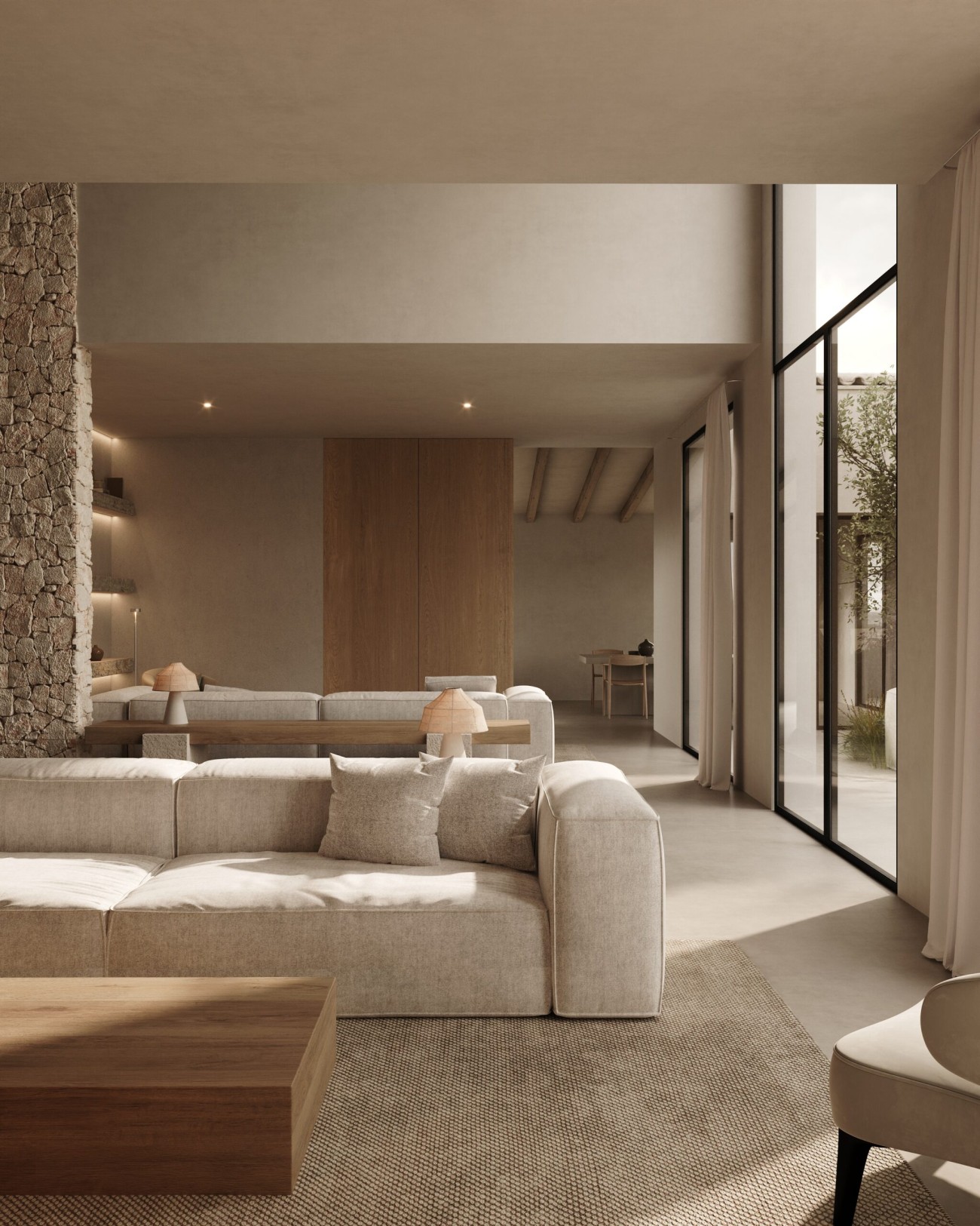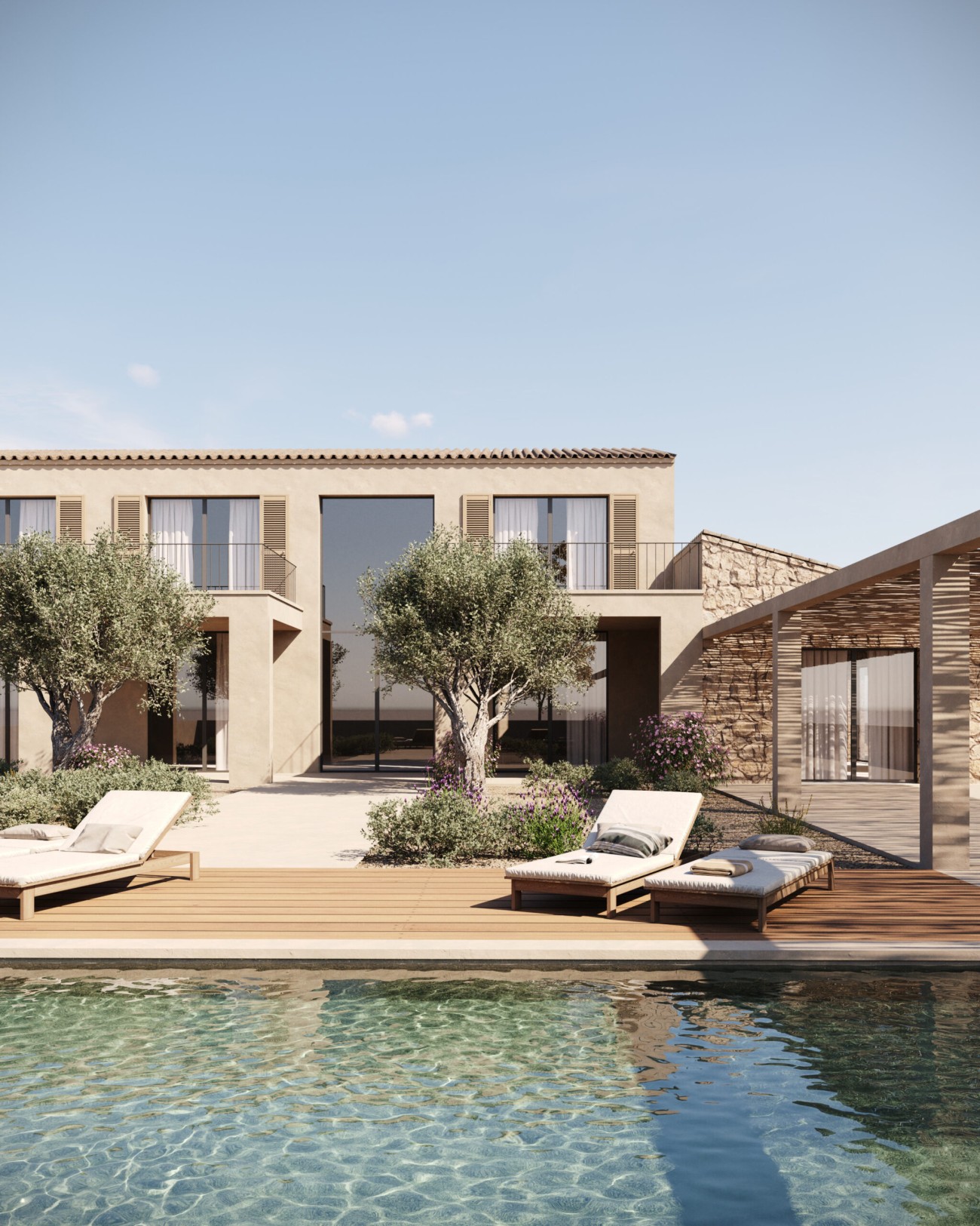 Deze villa strekt zich uit over drie verdiepingen, waar moderniteit en rustieke charme elkaar ontmoeten. Met strakke lijnen en natuurlijke materialen zoals eikenhout en steen biedt deze retraite ruime en gastvrije ruimtes.