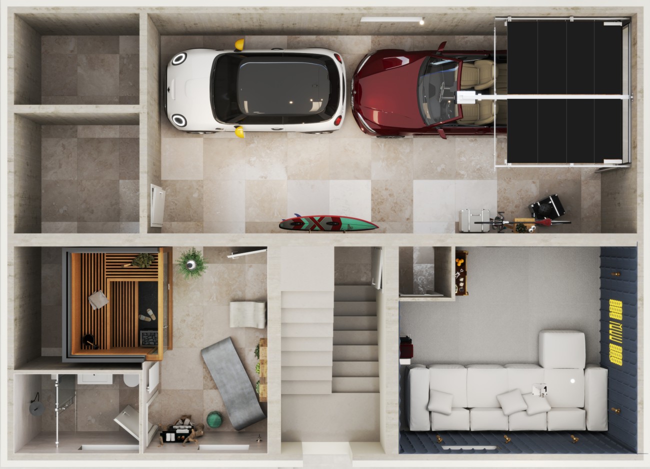 Andere kenmerken zijn materialen van hoge kwaliteit, een verwarmingssysteem, airconditioning, waterontkalker, uitstekende isolatie en ramen met dubbele beglazing. De dubbele garage is uitgerust met afstandsbediening en biedt ruimte voor fietsen, een boottrailer, surfplanken of andere spullen.