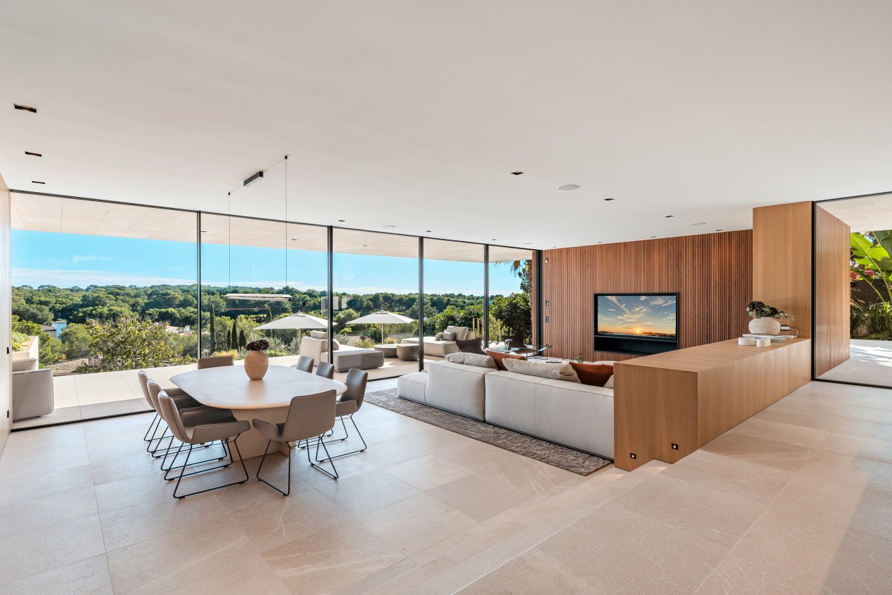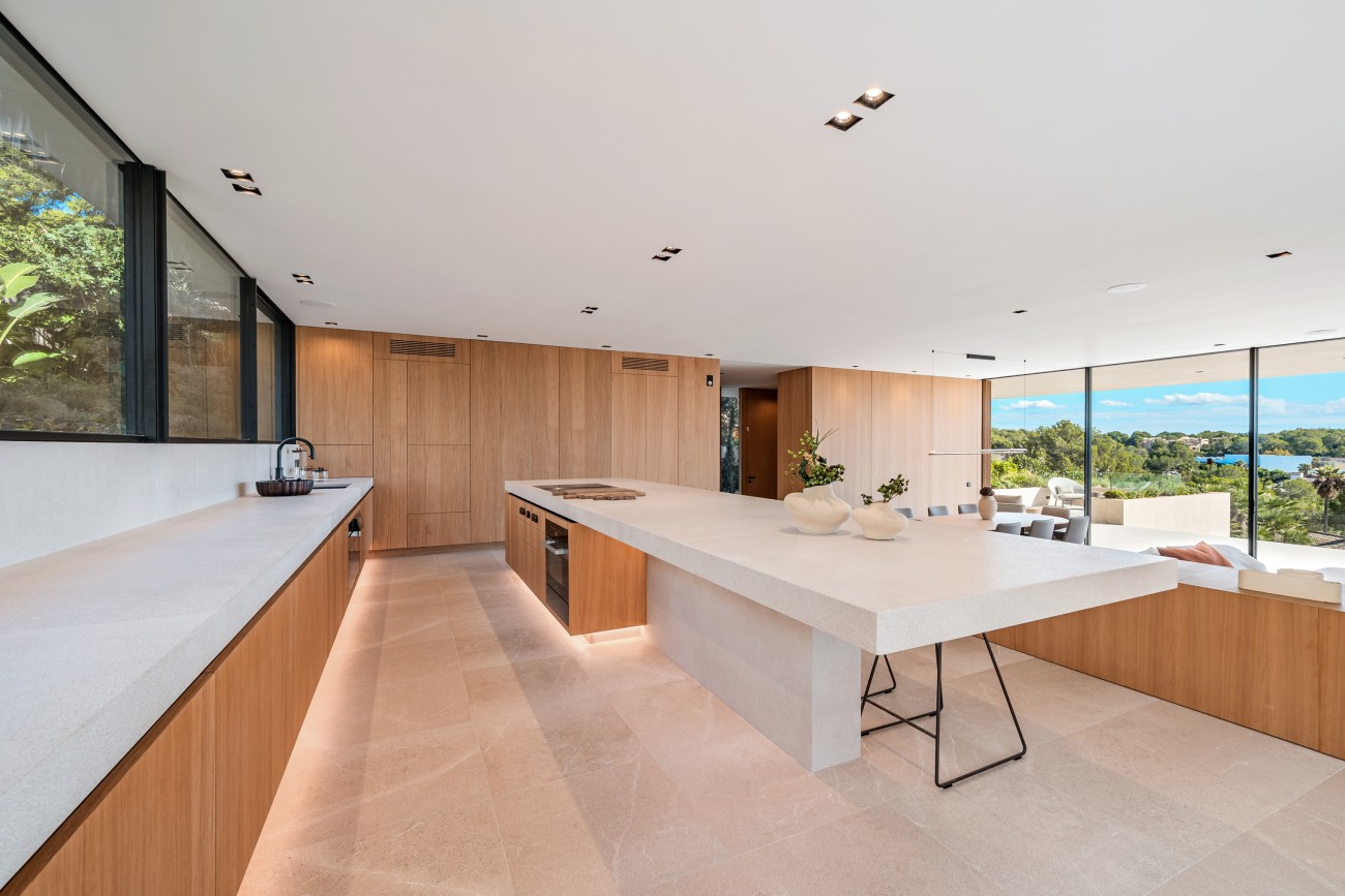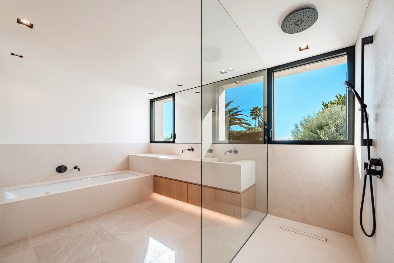 Deze nieuw gebouwde eigentijdse villa in Bendinat biedt een perfecte mix van moderne architectuur, verfijnde materialen en een bevoorrechte locatie op loopafstand van winkels en voorzieningen. Ontworpen met aandacht voor detail en een nadruk op natuurlijk licht, geniet de woning gedeeltelijk uitzicht op zee en de bergen en een wenselijke zuidoostelijke oriëntatie. Het elegante gebruik van natuursteen en eikenhouten vloeren zorgt overal voor een warme en toch verfijnde sfeer.