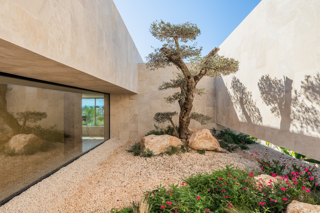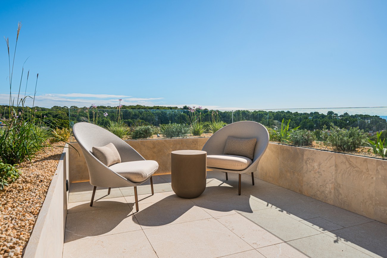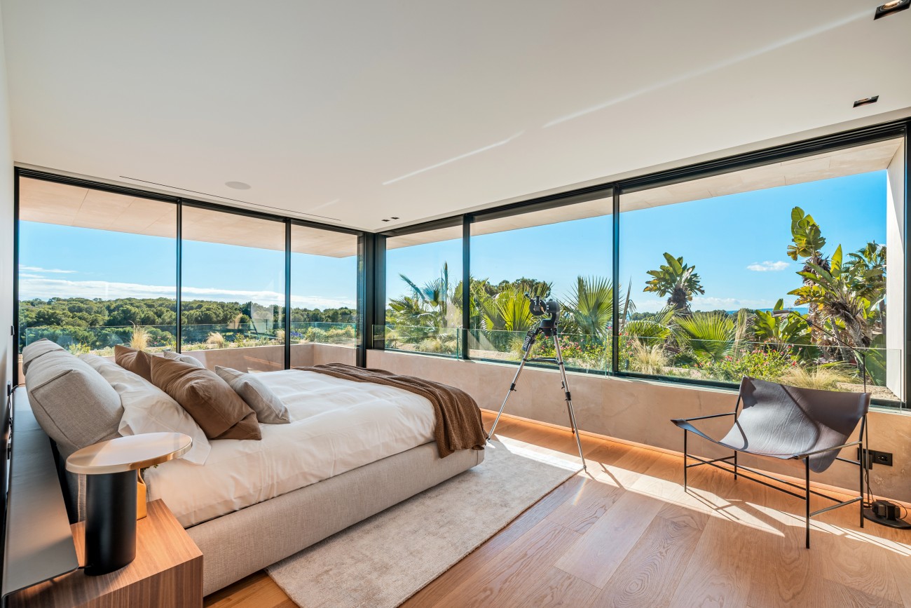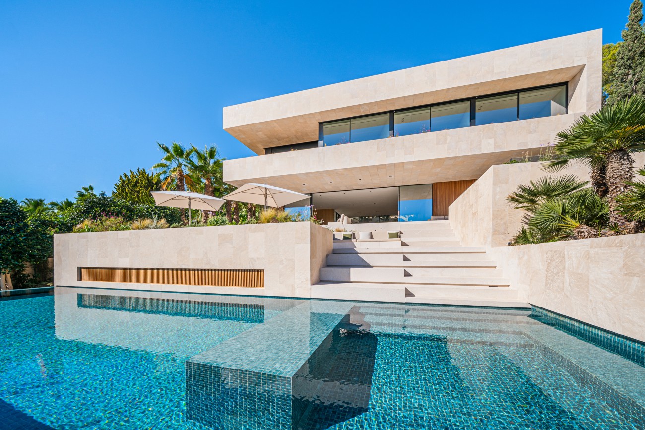 Deze nieuw gebouwde eigentijdse villa in Bendinat biedt een perfecte mix van moderne architectuur, verfijnde materialen en een bevoorrechte locatie op loopafstand van winkels en voorzieningen. Ontworpen met aandacht voor detail en een nadruk op natuurlijk licht, geniet de woning gedeeltelijk uitzicht op zee en de bergen en een wenselijke zuidoostelijke oriëntatie. Het elegante gebruik van natuursteen en eikenhouten vloeren zorgt overal voor een warme en toch verfijnde sfeer.