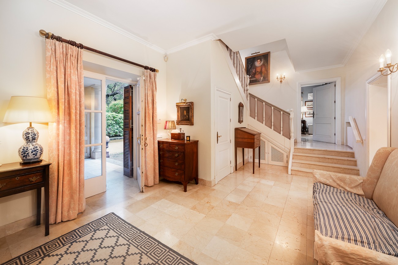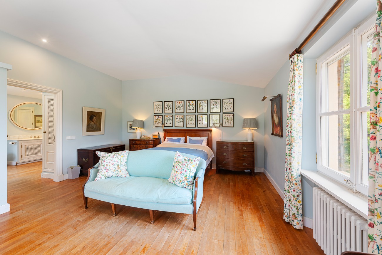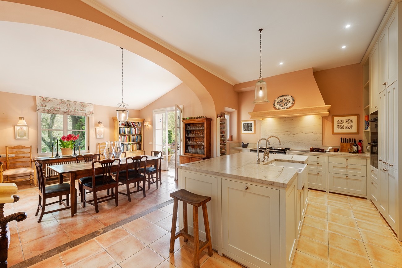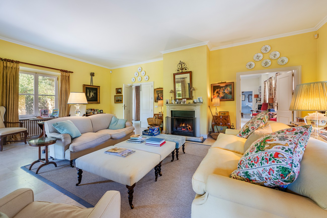 Het interieur biedt verfijnd comfort, met hoge plafonds, grote ramen en traditionele materialen zoals steen en marmer. Op de begane grond bevinden zich twee elegante salons met open haard, een winterse eetzaal, een kantoor/bibliotheek aan huis, een extra slaapkamer en badkamer (momenteel een speelkamer), twee gastentoiletten, een beveiligde kluis en een gerenoveerde keuken uitgerust met een Aga-fornuis en Miele-apparatuur, plus een aparte bijkeuken en wasruimte.