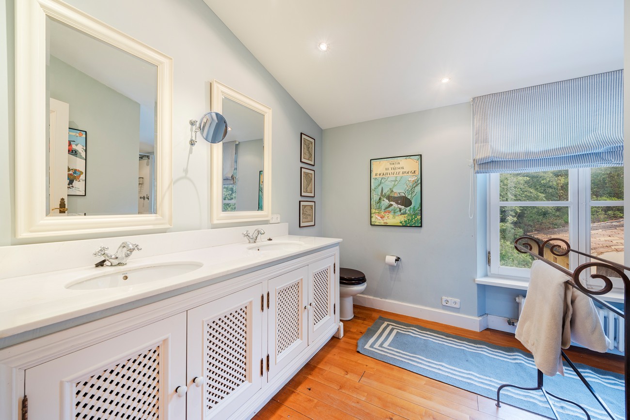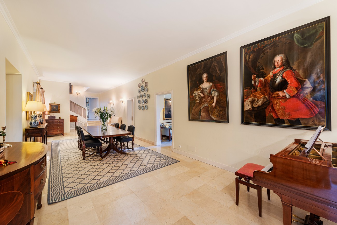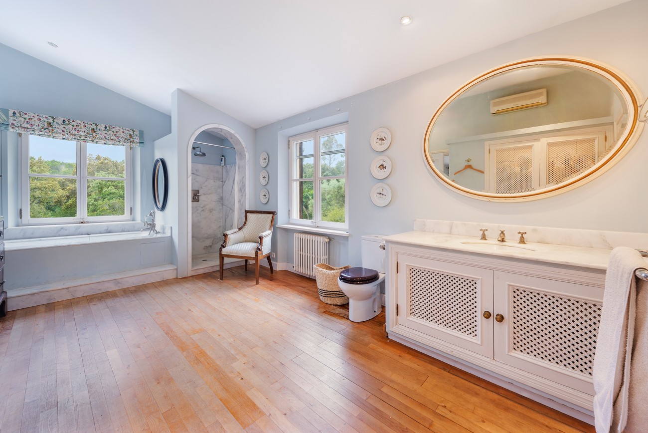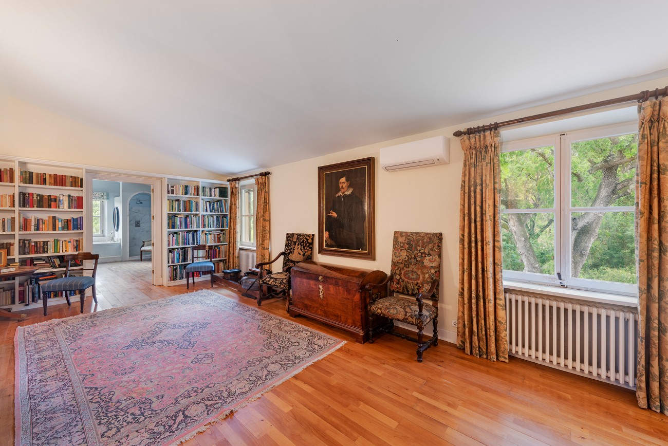 Het interieur biedt verfijnd comfort, met hoge plafonds, grote ramen en traditionele materialen zoals steen en marmer. Op de begane grond bevinden zich twee elegante salons met open haard, een winterse eetzaal, een kantoor/bibliotheek aan huis, een extra slaapkamer en badkamer (momenteel een speelkamer), twee gastentoiletten, een beveiligde kluis en een gerenoveerde keuken uitgerust met een Aga-fornuis en Miele-apparatuur, plus een aparte bijkeuken en wasruimte.