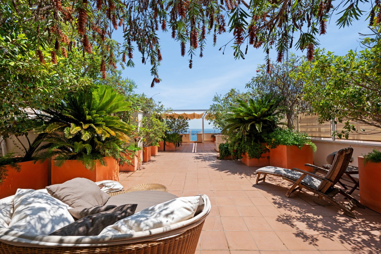 This exceptional penthouse is offered for for sale in Bonanova, a tranquil and exclusive neighbourhood that offers both privacy and convenient proximity to the vibrant heart of Palma. Set within a meticulously maintained community of just ten residences, this home provides a serene lifestyle in a prime setting. Its very easy to take the bus to the city center. Walking distance to Porti Pi.