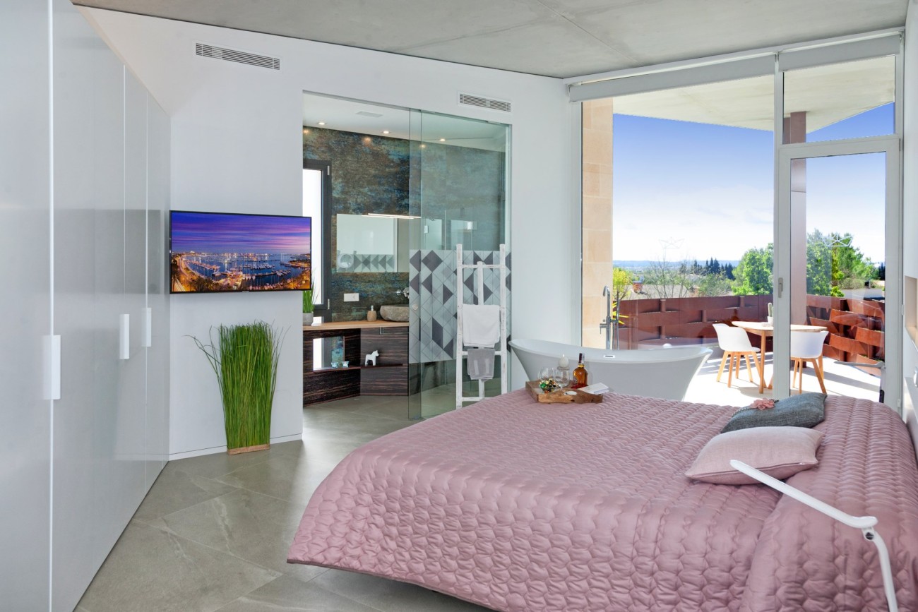 Deze prachtige eigentijdse villa is nu beschikbaar voor verkoop in de serene en prestigieuze woonwijk van S’Ubac, een luxe heuvel gemeenschap op slechts 8 minuten rijden van de charmante oude stad van Pollença. Ontworpen volgens de hoogste normen, het pand biedt een uitzonderlijke mix van verfijnde esthetiek, geavanceerde technologie en dagelijks comfort, een ideale keuze voor een luxe eerste woning of een stijlvolle tweede huis in Mallorca.
