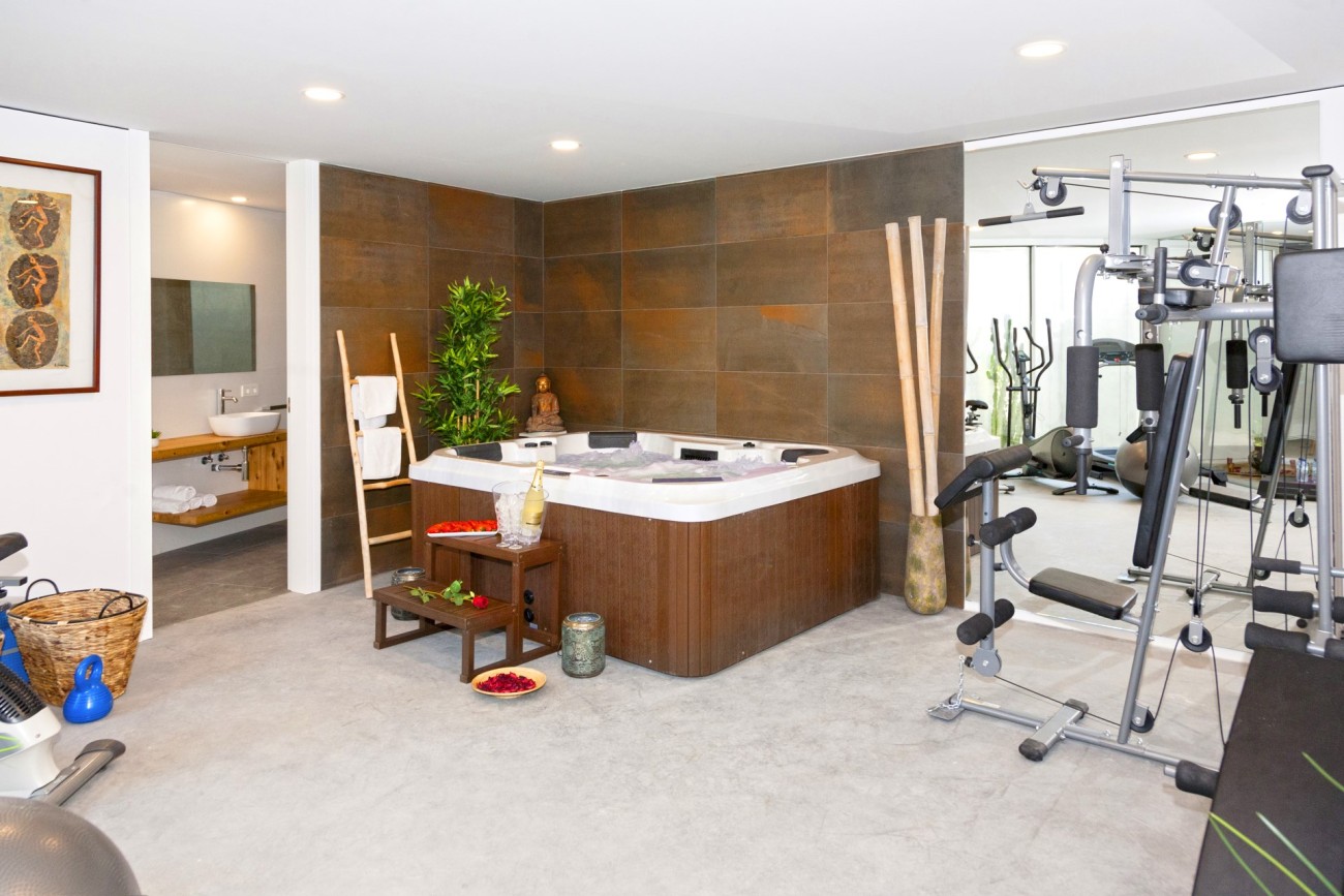Extra voorzieningen zijn onder andere een volledig uitgeruste moderne fitnessruimte en wellnessruimte met sauna, eigen badkamer en toegang tot de patio, een flexibele ruimte die ook kan dienen als vijfde slaapkamer, kantoor aan huis of studio. Een grote privégarage biedt parkeergelegenheid voor vier of meer voertuigen en beschikt over een oplaadstation voor elektrische voertuigen.
