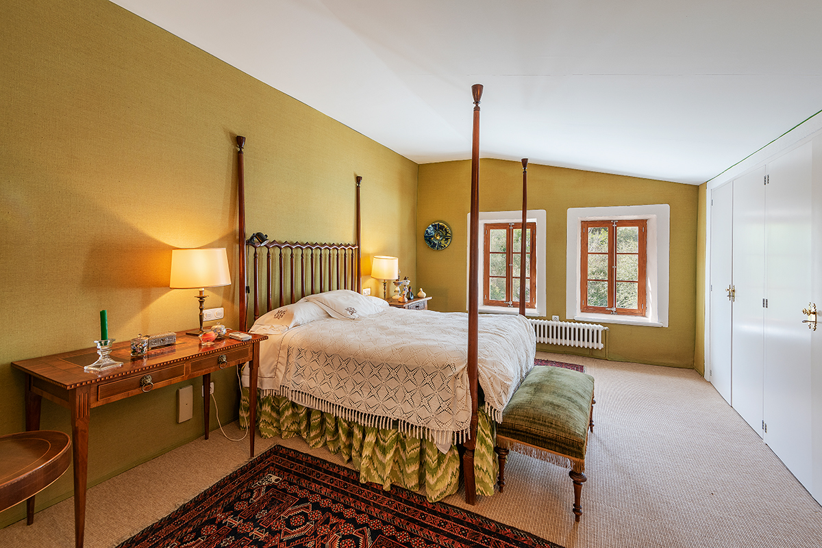 Het prachtige huis dateert uit 1794 en ademt nog steeds een historische sfeer uit die je tegenwoordig zelden meer aantreft. Het interieur is in 1974 volledig gerenoveerd met behoud van de originele uitstraling, benadrukt door stenen muren in sommige ontvangstruimten, rustieke terracotta vloertegels, gemetselde rekken en stevige houten balken in de plafonds van veel kamers, met name in sommige ontvangstruimten. Een enorme open haard in een van de woonkamers zorgt voor een huiselijke sfeer. Alle kamers, inclusief de badkamers, hebben meer dan royale afmetingen , de totale woonoppervlakte bedraagt ongeveer 700m2, aangevuld met een apart gastenverblijf van nog eens 200m2.