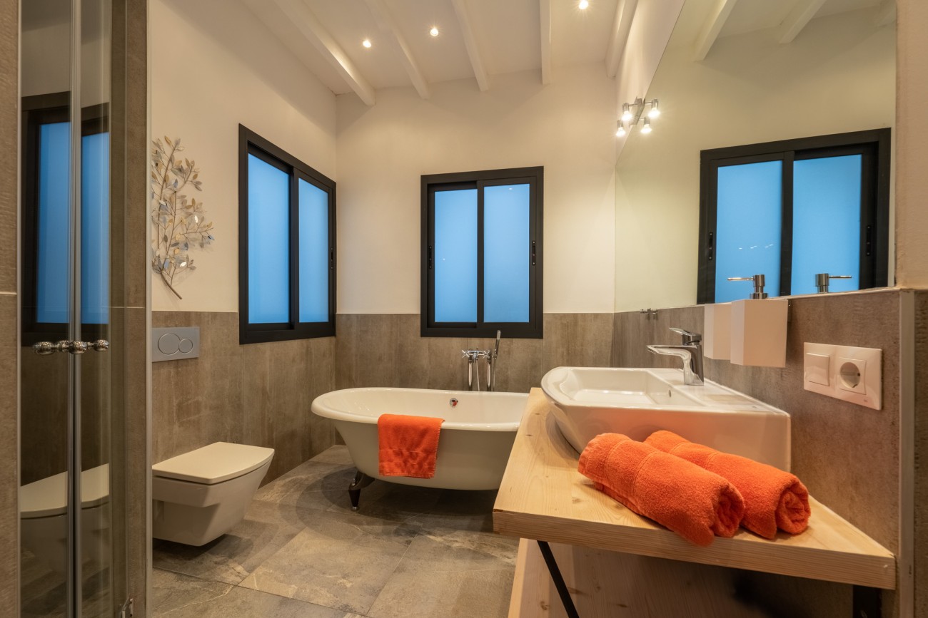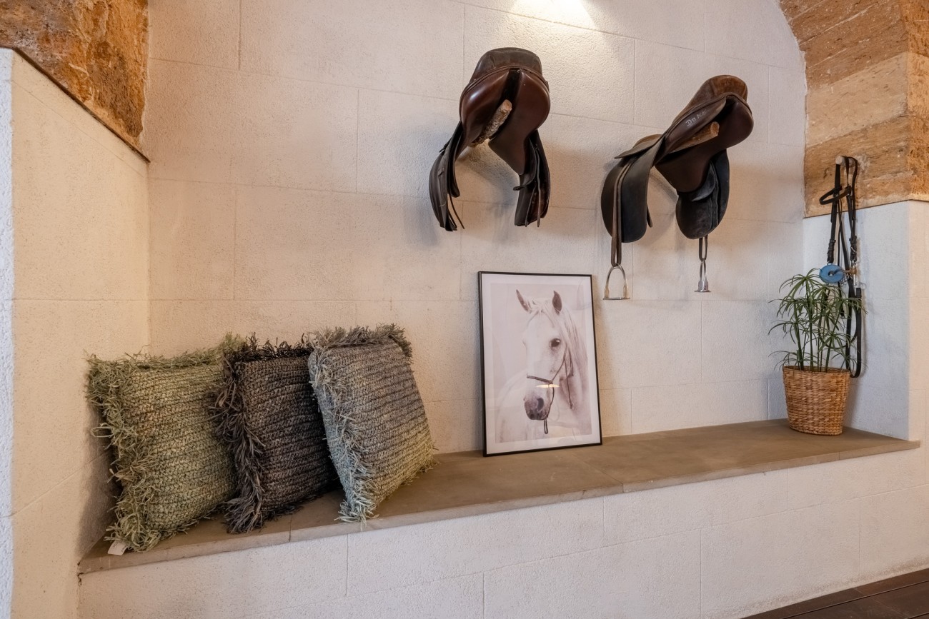 De indeling bestaat uit vier slaapkamers, met de mogelijkheid om een vijfde te creëren, en drie goed ingerichte badkamers. Hoogwaardige parketvloeren en natuurstenen elementen brengen textuur en harmonie in de ruimte, terwijl aluminium ramen met dubbele beglazing, vloerverwarming en airconditioning het hele jaar door voor comfort zorgen. Het huis heeft een lift voor extra gemak, samen met een privégarage voor één voertuig, een aanwinst van onschatbare waarde in dit gebied. Extra’s zoals balkenplafond, een volledig gemeubileerd interieur, een wasruimte, een berging en de charmante binnenpatio maken het huis nog aantrekkelijker.