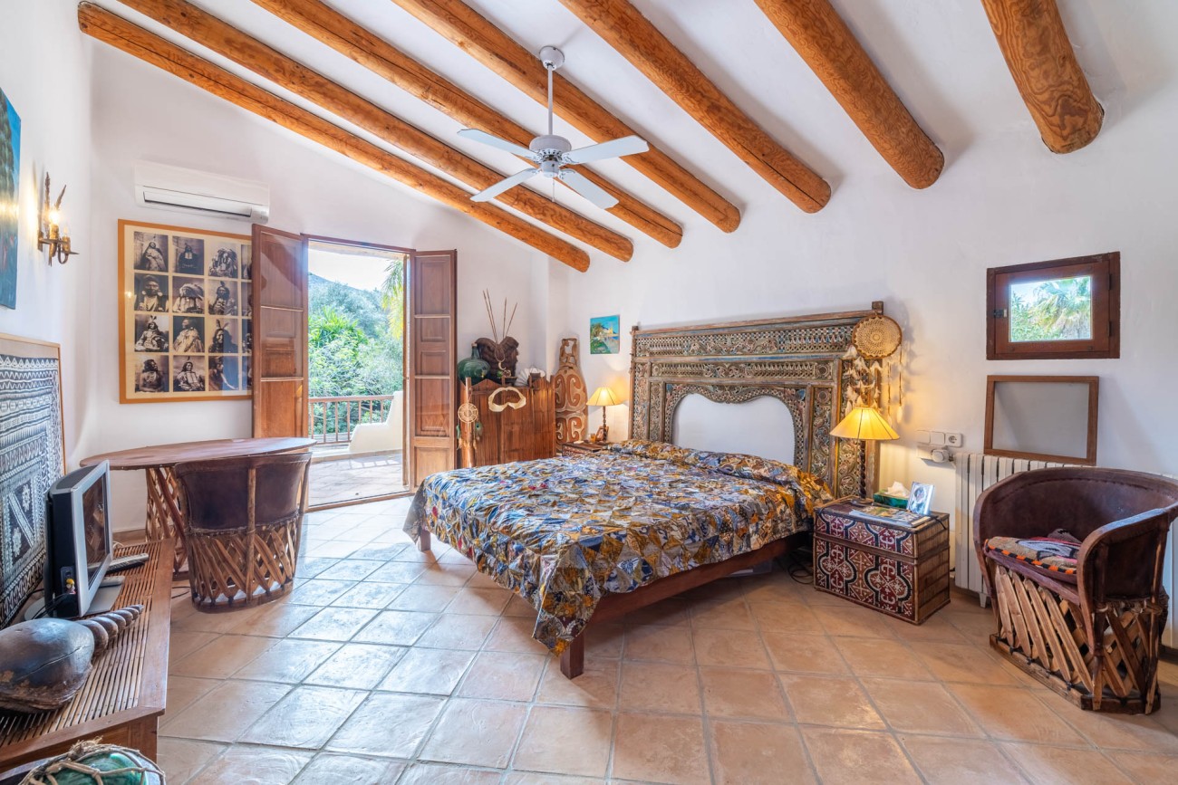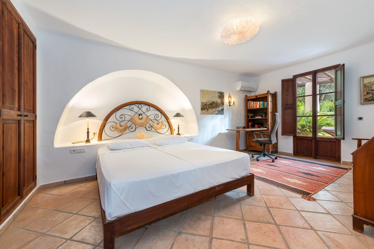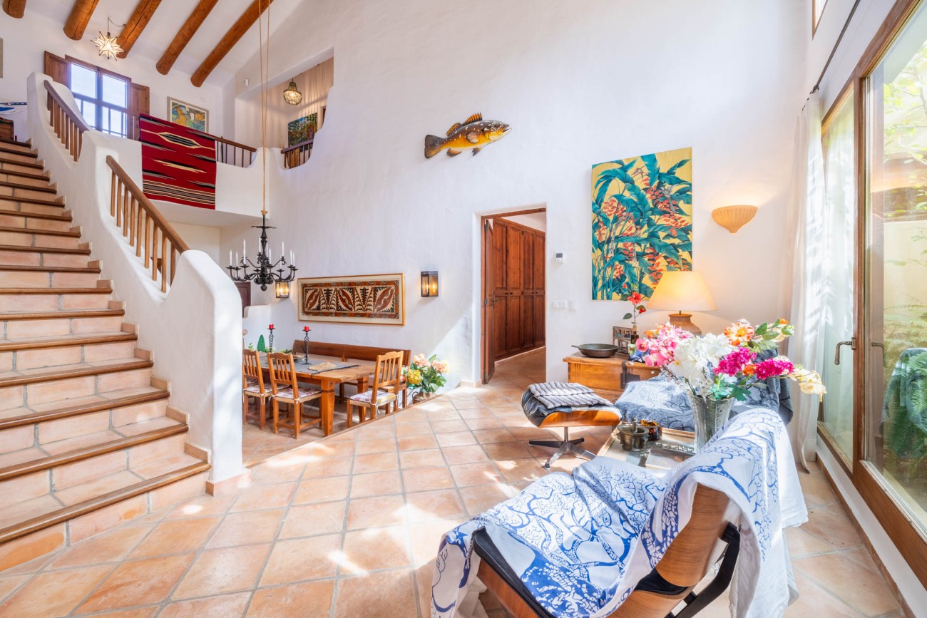 De bovenverdieping is bereikbaar via een trap in Mexicaanse pueblo-stijl en bevat een galerij en twee prachtige slaapkamers met schuine balkenplafonds, inbouwkasten, eigen badkamers en verhoogde terrassen met uitzicht op de tropische tuin, het zwembad, de Balinese hut en de bergen. Een ander terras biedt een prachtig uitzicht over de baai van Pollensa en de zonsondergangen.