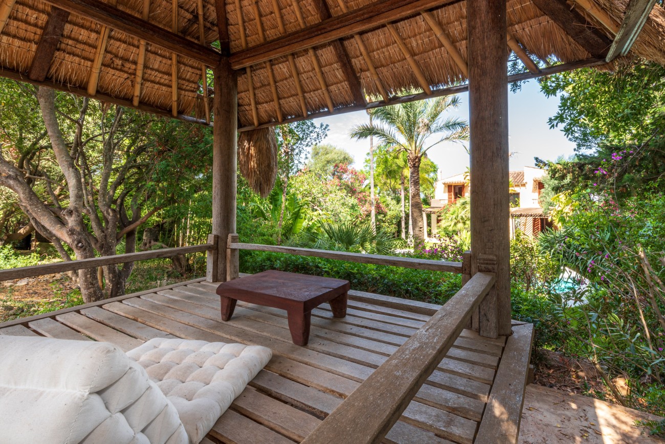Het buitenleven is uitzonderlijk, met een ruim terracotta terras, een natuurlijk gevormd zwembad, een stenen poolhouse en een bamboedouche omringd door weelderige vegetatie op een perceel van 1.670 m². Het bovenste perceel van 410 m² – nu inbegrepen – met een Balinese hut biedt mogelijkheden om een gastenverblijf van 150 m² te bouwen.