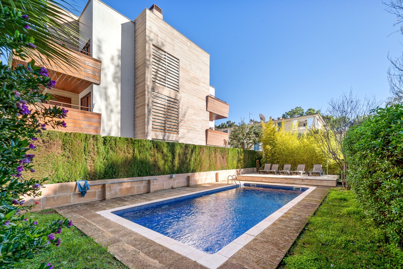 Additional highlights include reverse-cycle air conditioning, fitted wardrobes, a patio, private garden, and access to a community swimming pool, all within one of North Mallorca’s most sought-after locations.