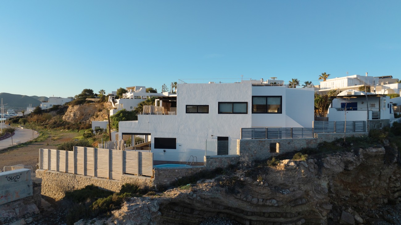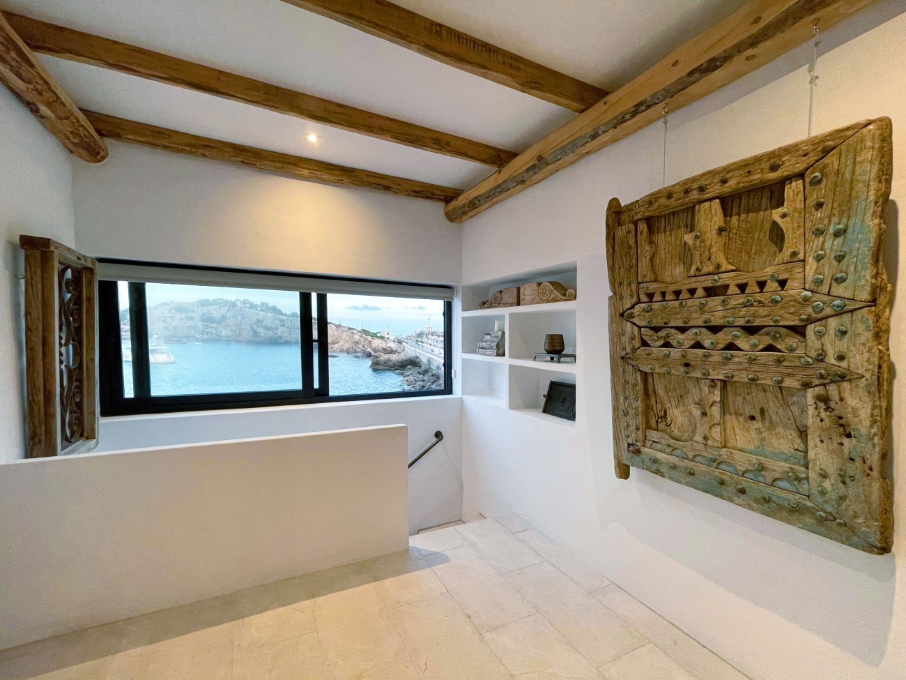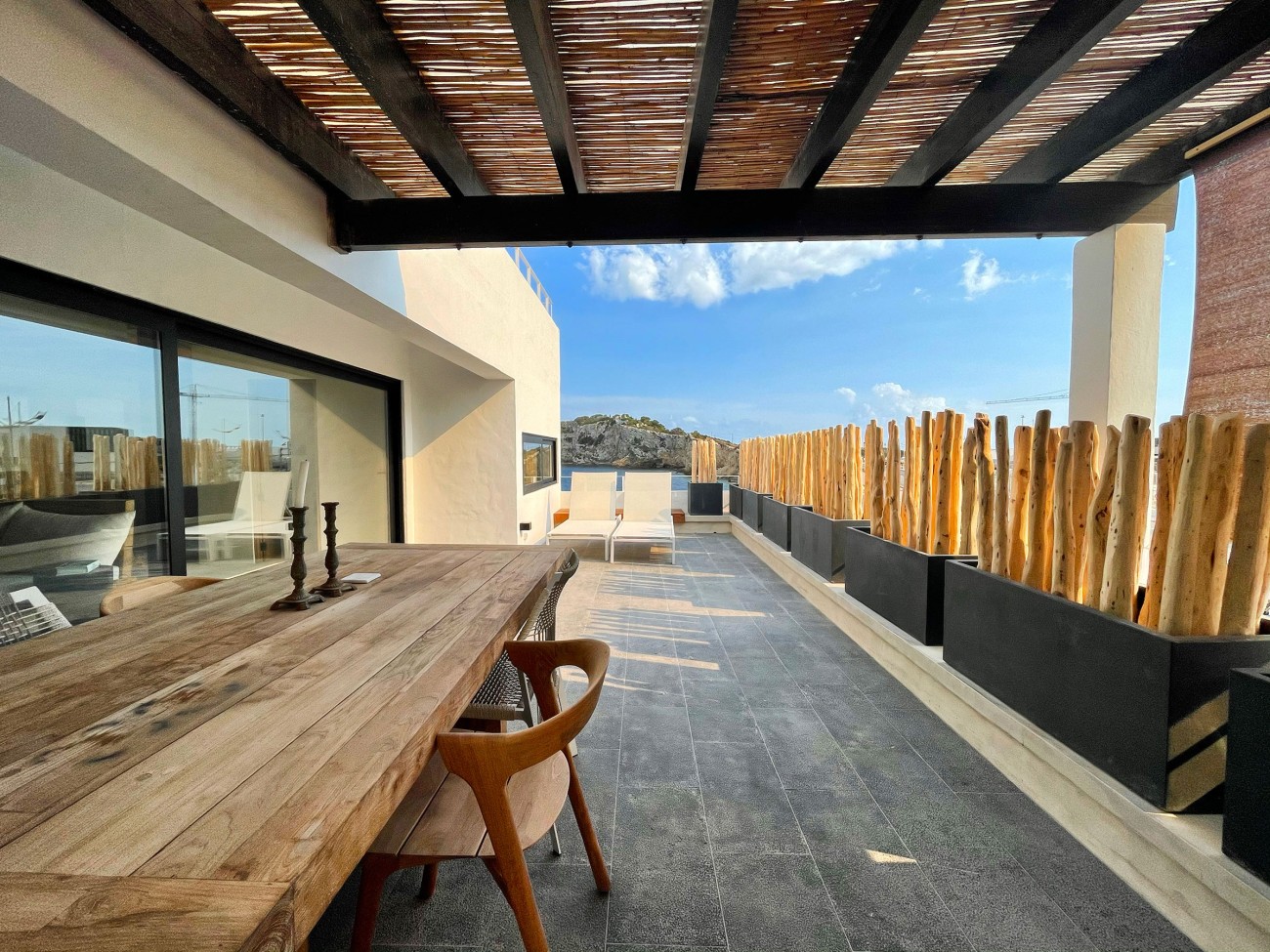 Deze prachtige villa te koop in Marina Botafoch – Ibiza, heeft een bevoorrechte ligging aan de voorkant en combineert edele materialen zoals hout en steen, waardoor het een warme en uitnodigende sfeer biedt. Met een bebouwde oppervlakte van 256m² heeft het vier ruime slaapkamers, drie volledige badkamers en een toilet, ideaal om de hele familie te huisvesten.