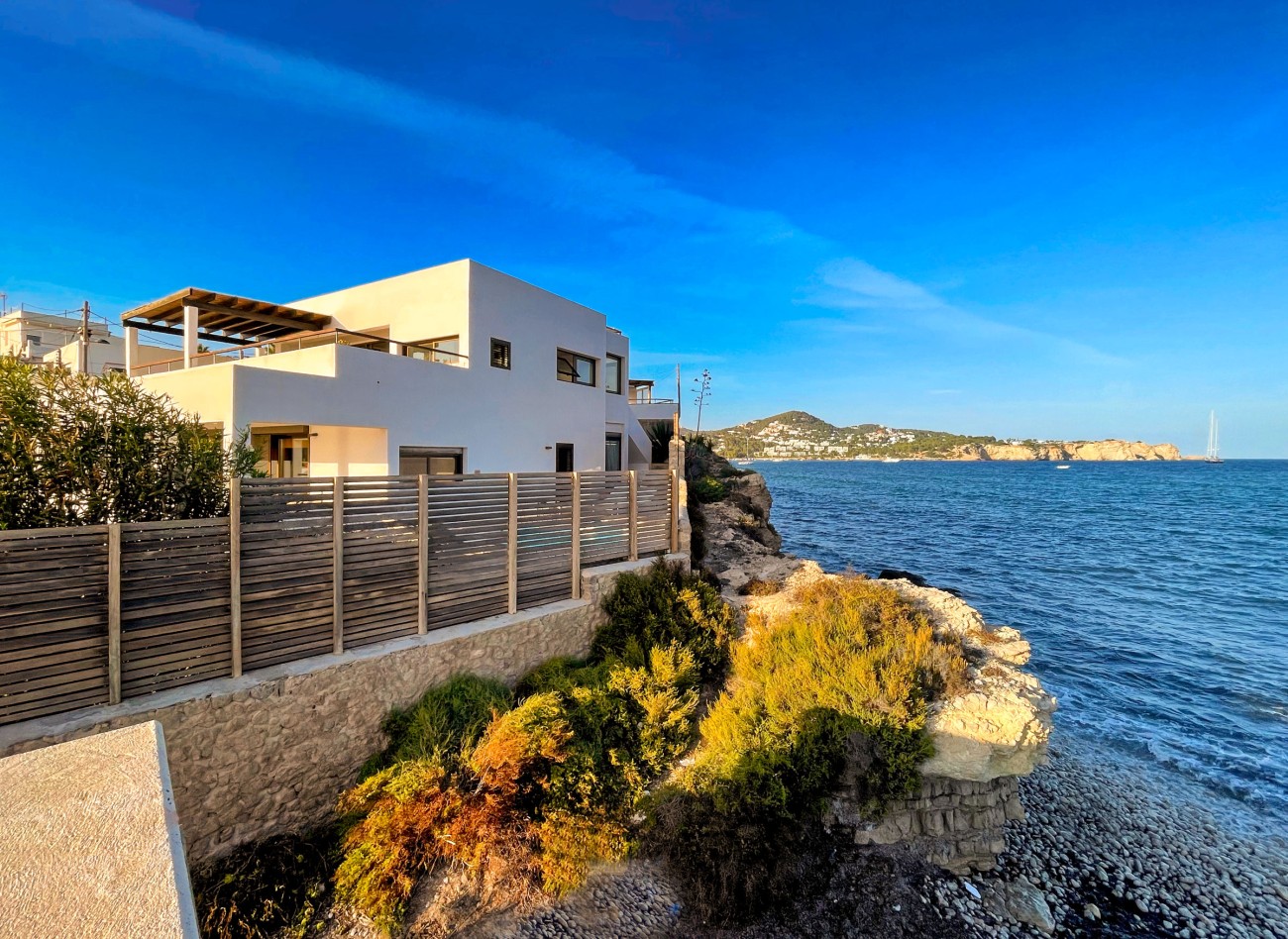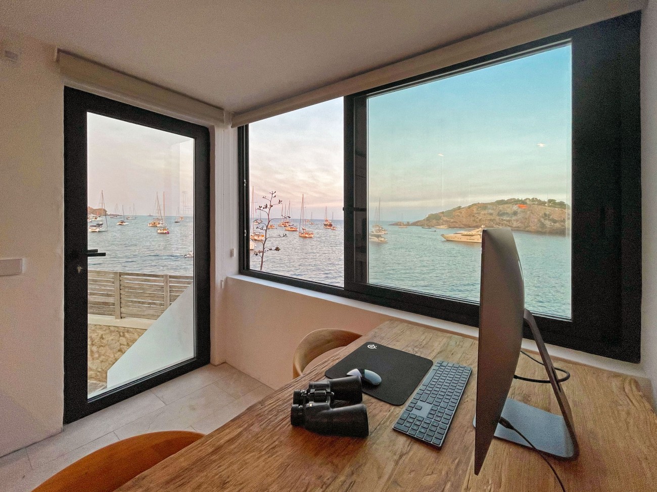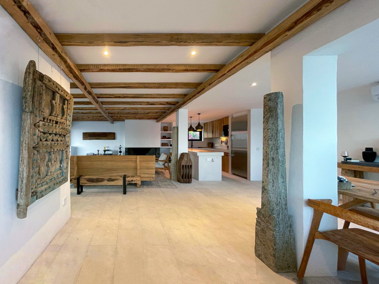 Deze prachtige villa te koop in Marina Botafoch – Ibiza, heeft een bevoorrechte ligging aan de voorkant en combineert edele materialen zoals hout en steen, waardoor het een warme en uitnodigende sfeer biedt. Met een bebouwde oppervlakte van 256m² heeft het vier ruime slaapkamers, drie volledige badkamers en een toilet, ideaal om de hele familie te huisvesten.