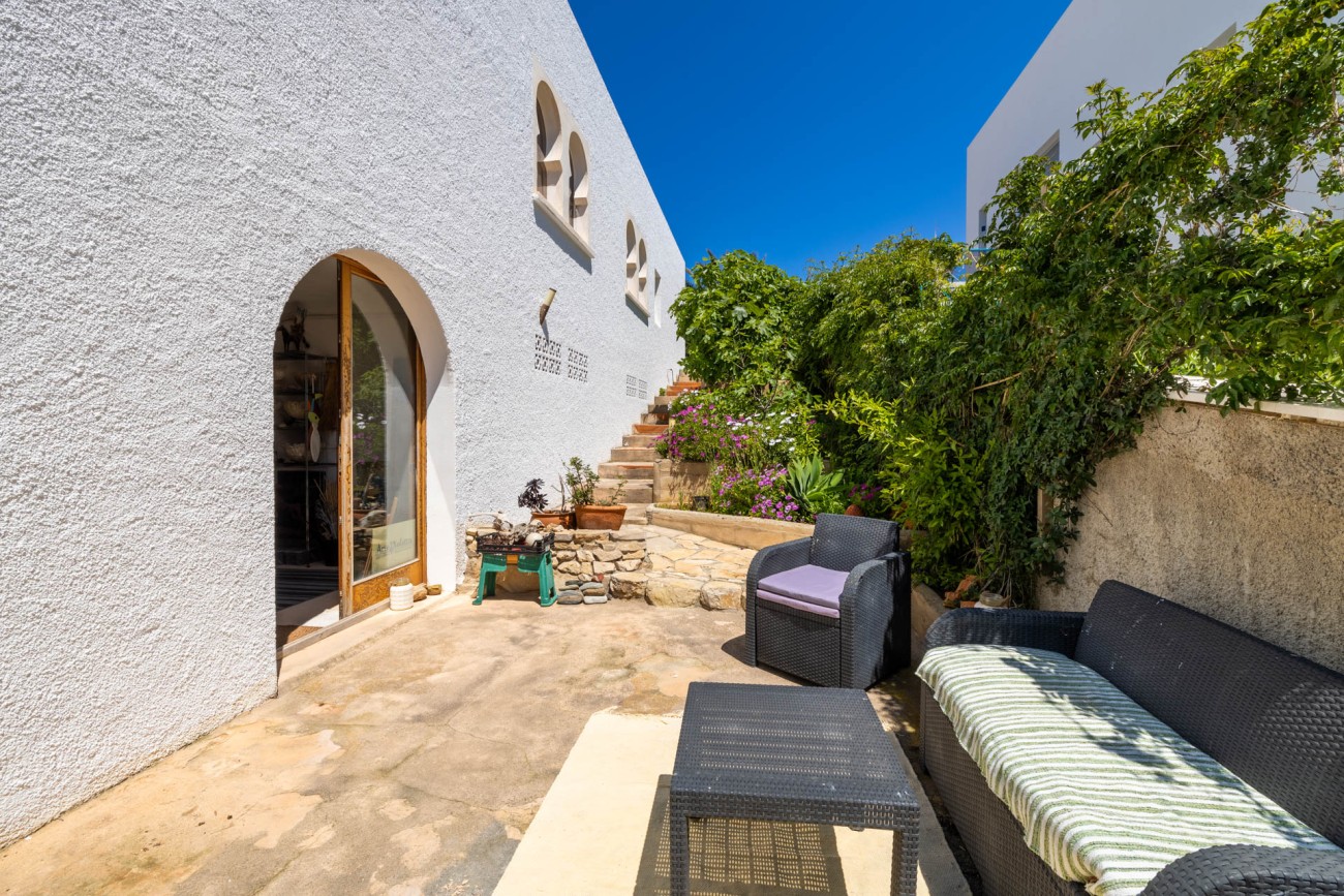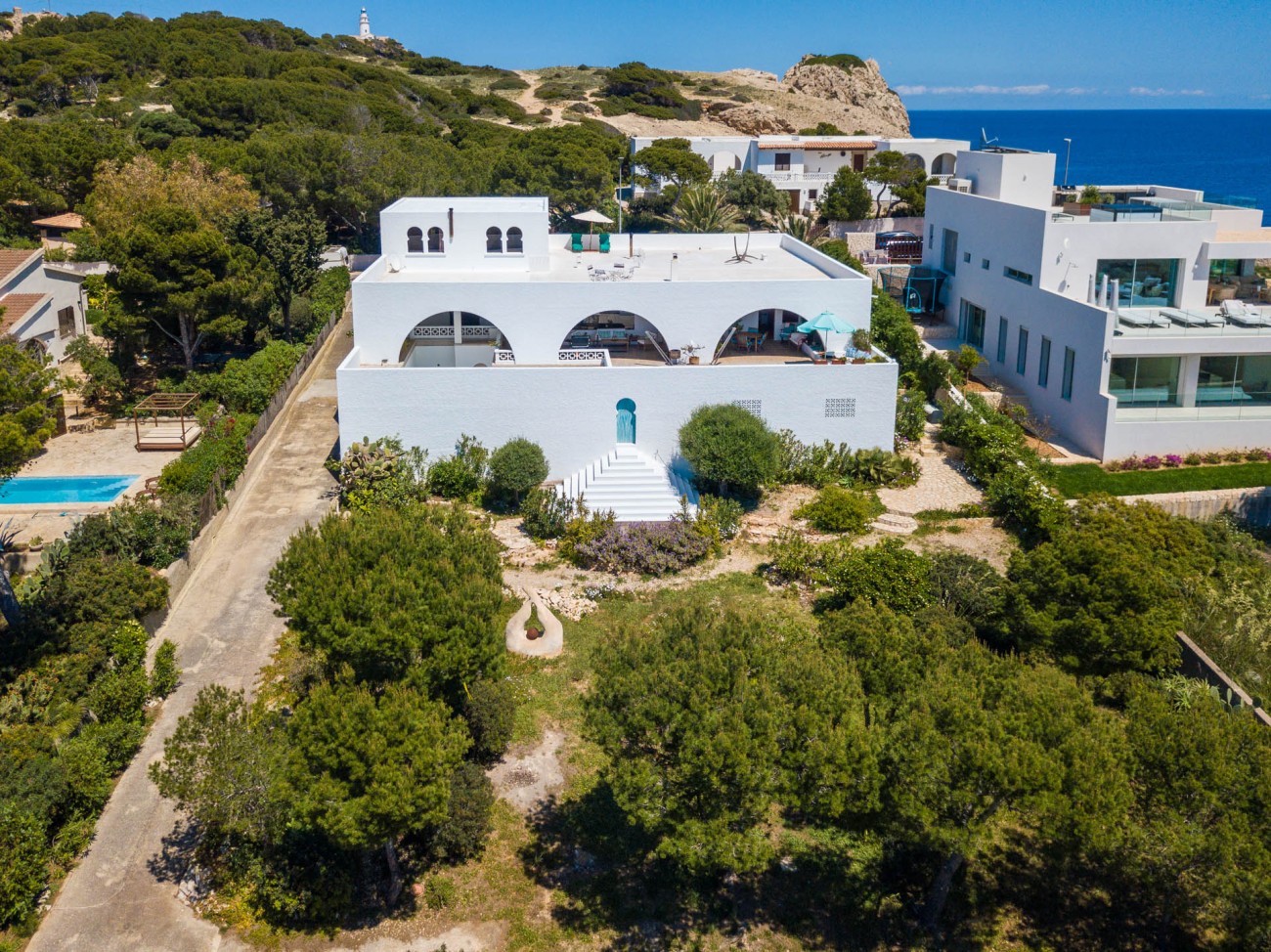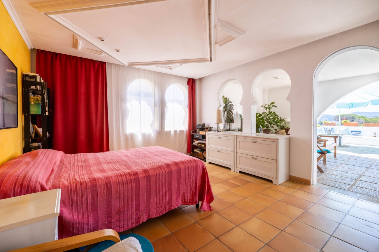 Het huis strekt zich uit over meerdere verdiepingen en biedt een verscheidenheid aan zitgedeeltes binnen en buiten, waaronder zonovergoten terrassen en overdekte ruimtes waar je het hele jaar door van kunt genieten. Een echt hoogtepunt is het unieke zwembad, slim geïntegreerd in het hoofdterras. Afgescheiden door een zitgedeelte en gedeeltelijk in de schaduw onder gewelfde stenen, biedt het een magische omgeving om te ontspannen terwijl je uitkijkt over de zee.