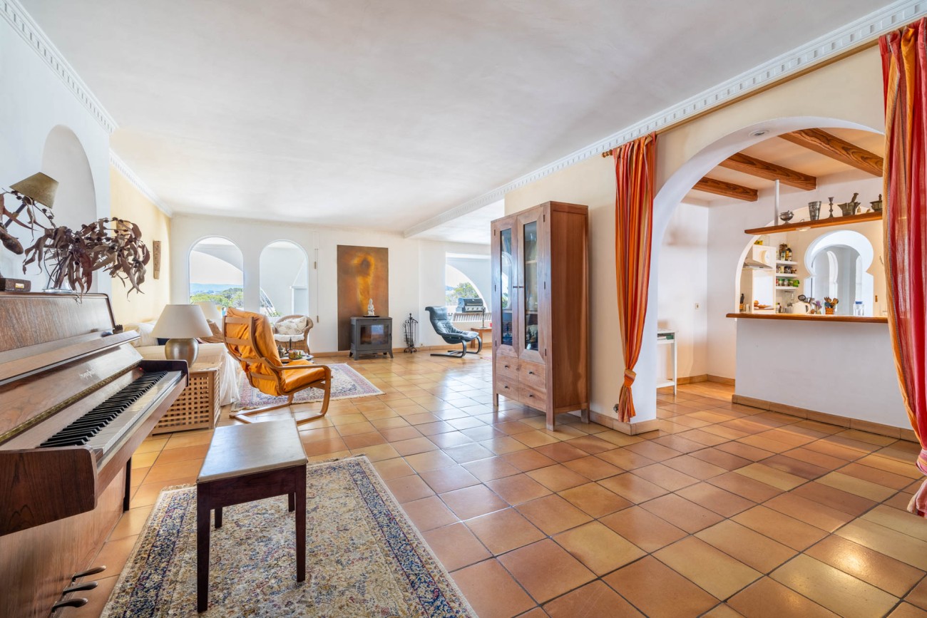 Het pand heeft in totaal vijf slaapkamers en vier badkamers, waaronder prachtig bewerkte interieurs met traditionele Mallorcaanse kenmerken zoals boogramen en deuropeningen, handgemaakte tegelvloeren en houten balken. Een gezellige eethoek met open haard nodigt uit tot ontspannen avonden, terwijl de keuken in rustieke stijl zijn authentieke charme behoudt met warme houten accenten en natuurlijk licht.
