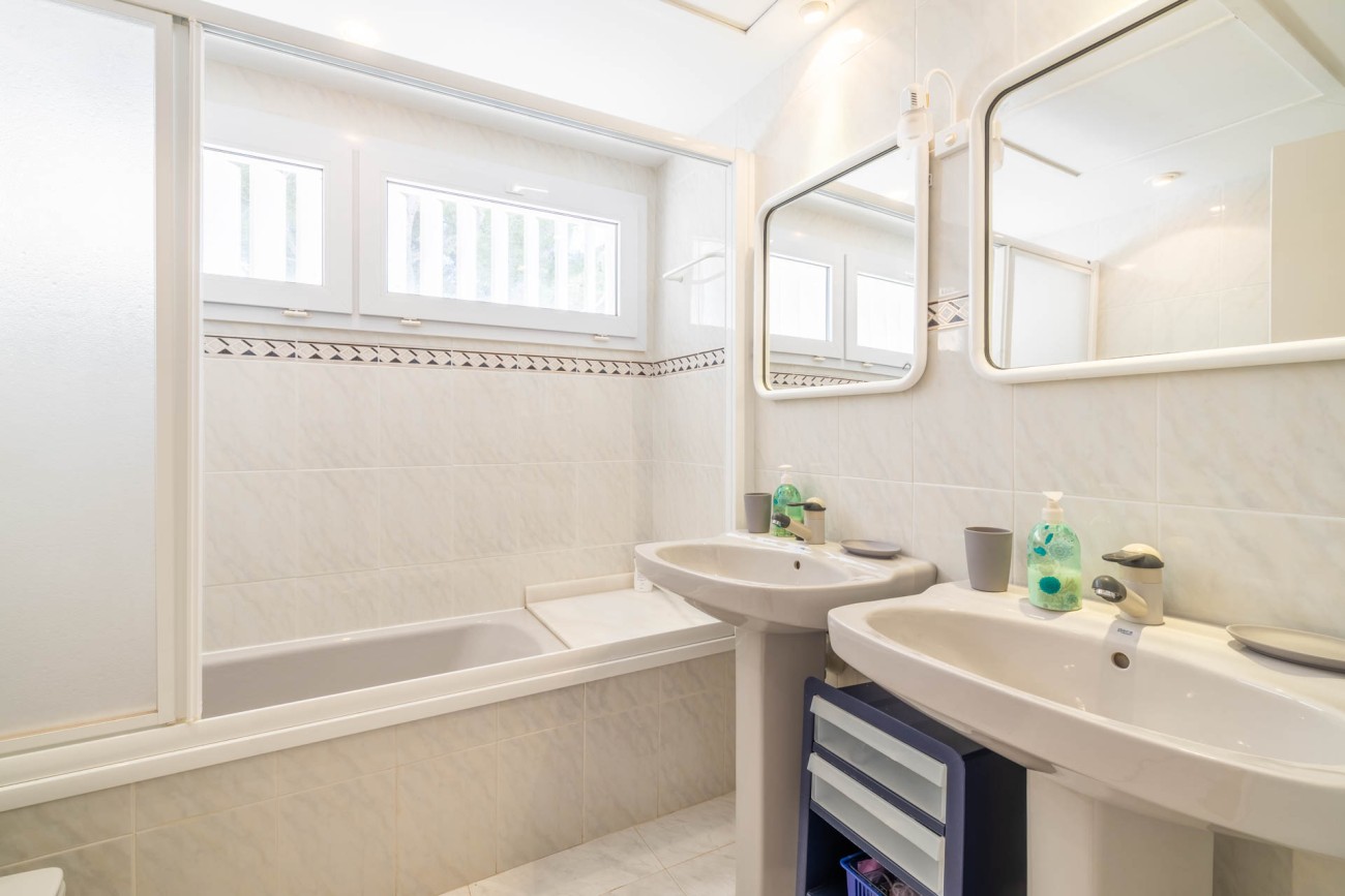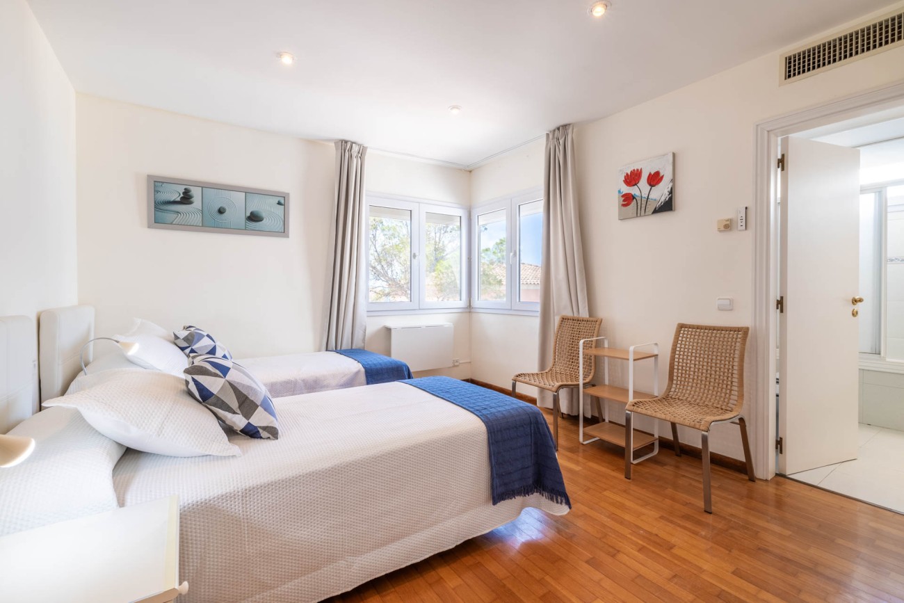 Dankzij de individuele ruimtes kun je genieten van verschillende omgevingen, die in perfecte harmonie samensmelten met de ruimtelijkheid en helderheid van deze villa. Het bestaat uit vier tweepersoonskamers, een eenpersoonskamer en vier badkamers. Door de grote ramen valt er in elke ruimte natuurlijk licht binnen, zodat je kunt genieten van het heerlijke klimaat dat Mallorca biedt.