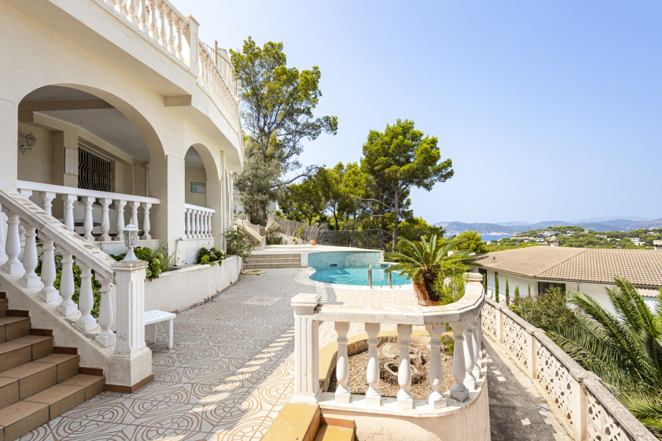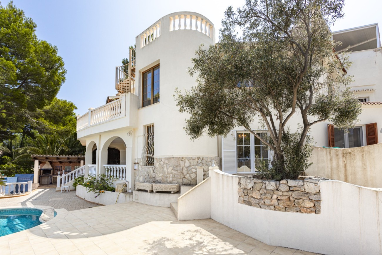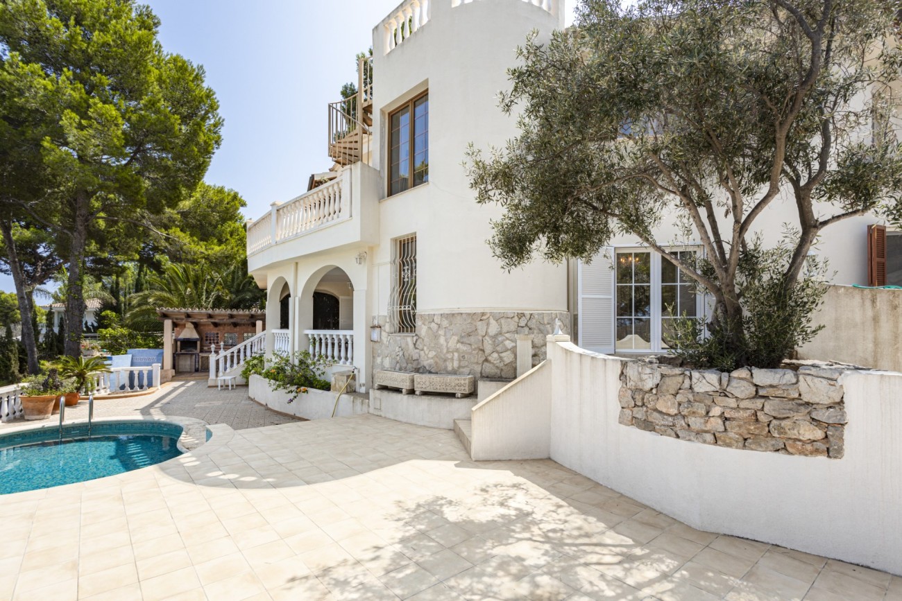 Met genoegen presenteren we deze aantrekkelijke villa met vier slaapkamers te koop in Santa Ponsa, op een verhoogd perceel van meer dan 1.000 m2, met een indrukwekkend uitzicht op de kust. Deze locatie is zeer gewild, met gemakkelijke toegang tot voorzieningen, en slechts een klein eindje rijden naar het strand, de golfbaan en Port Adriano, waardoor het een geweldige keuze familie thuis voor vakantie of het hele jaar door wonen.