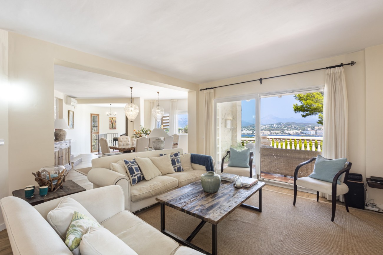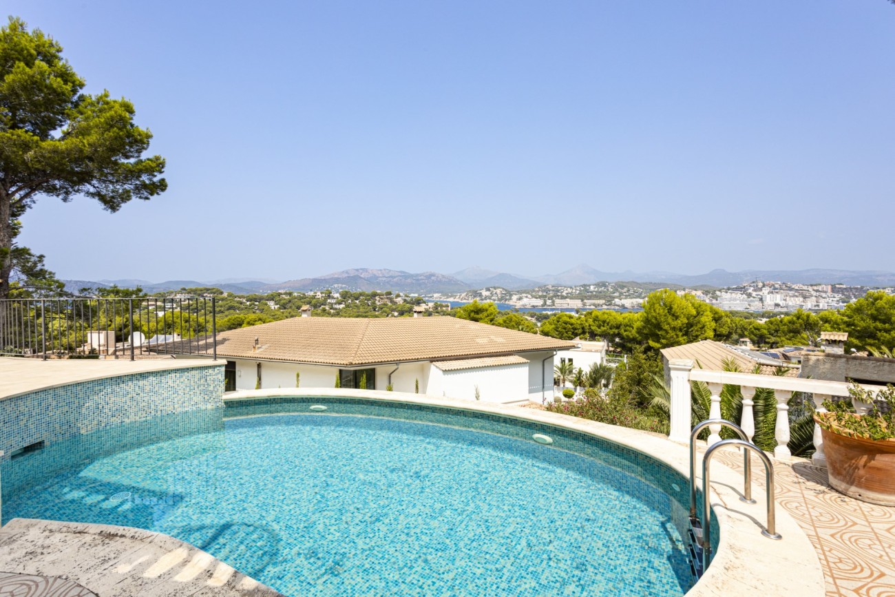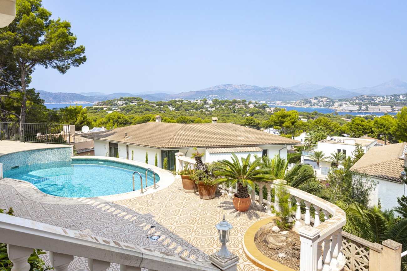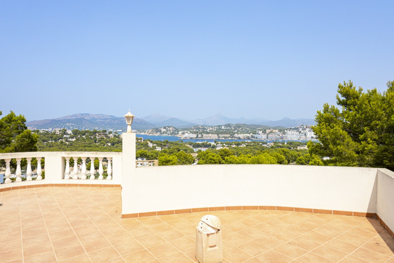 Met genoegen presenteren we deze aantrekkelijke villa met vier slaapkamers te koop in Santa Ponsa, op een verhoogd perceel van meer dan 1.000 m2, met een indrukwekkend uitzicht op de kust. Deze locatie is zeer gewild, met gemakkelijke toegang tot voorzieningen, en slechts een klein eindje rijden naar het strand, de golfbaan en Port Adriano, waardoor het een geweldige keuze familie thuis voor vakantie of het hele jaar door wonen.