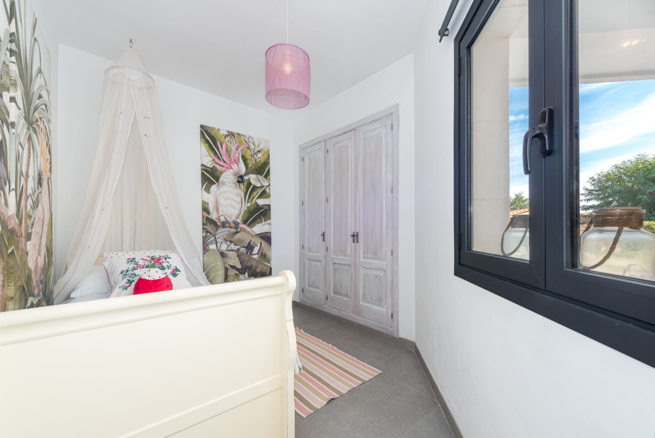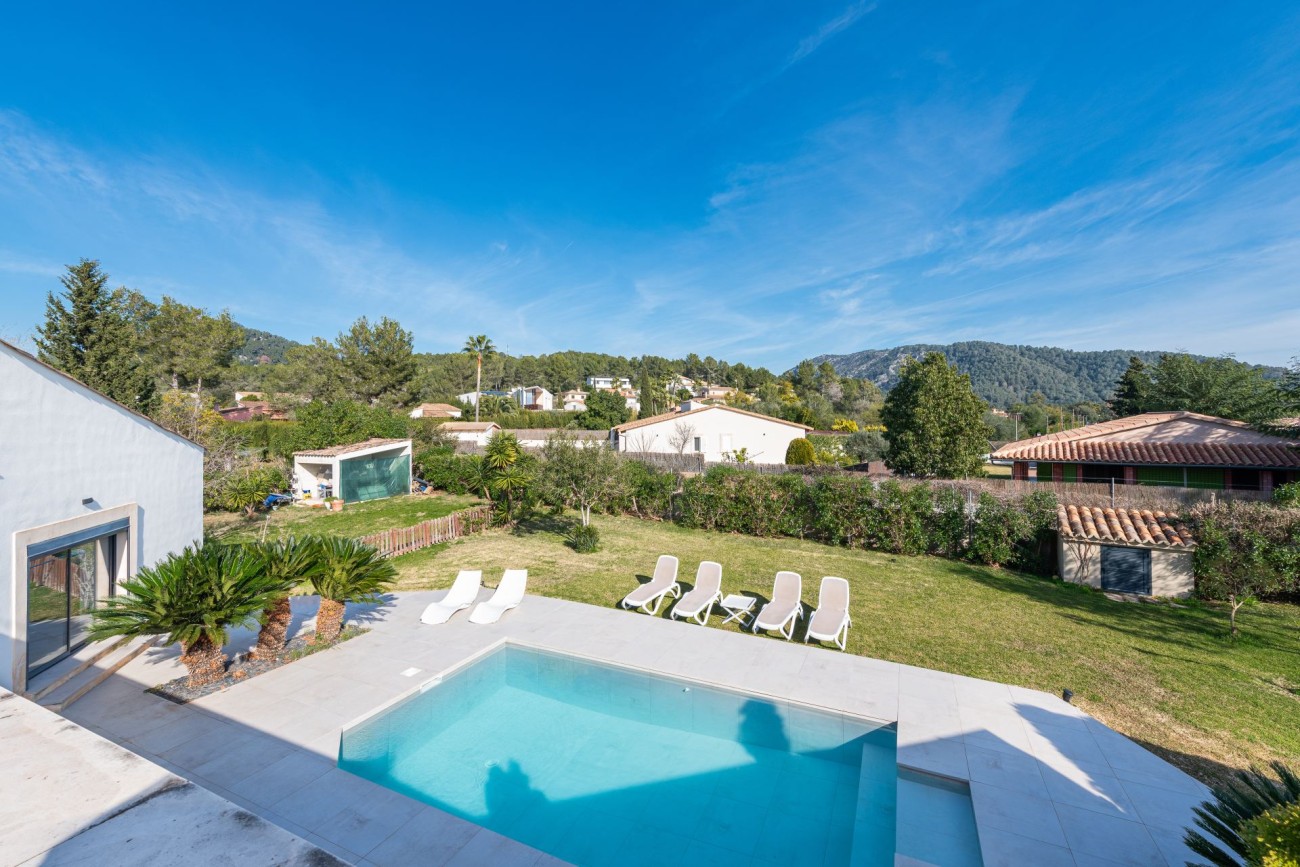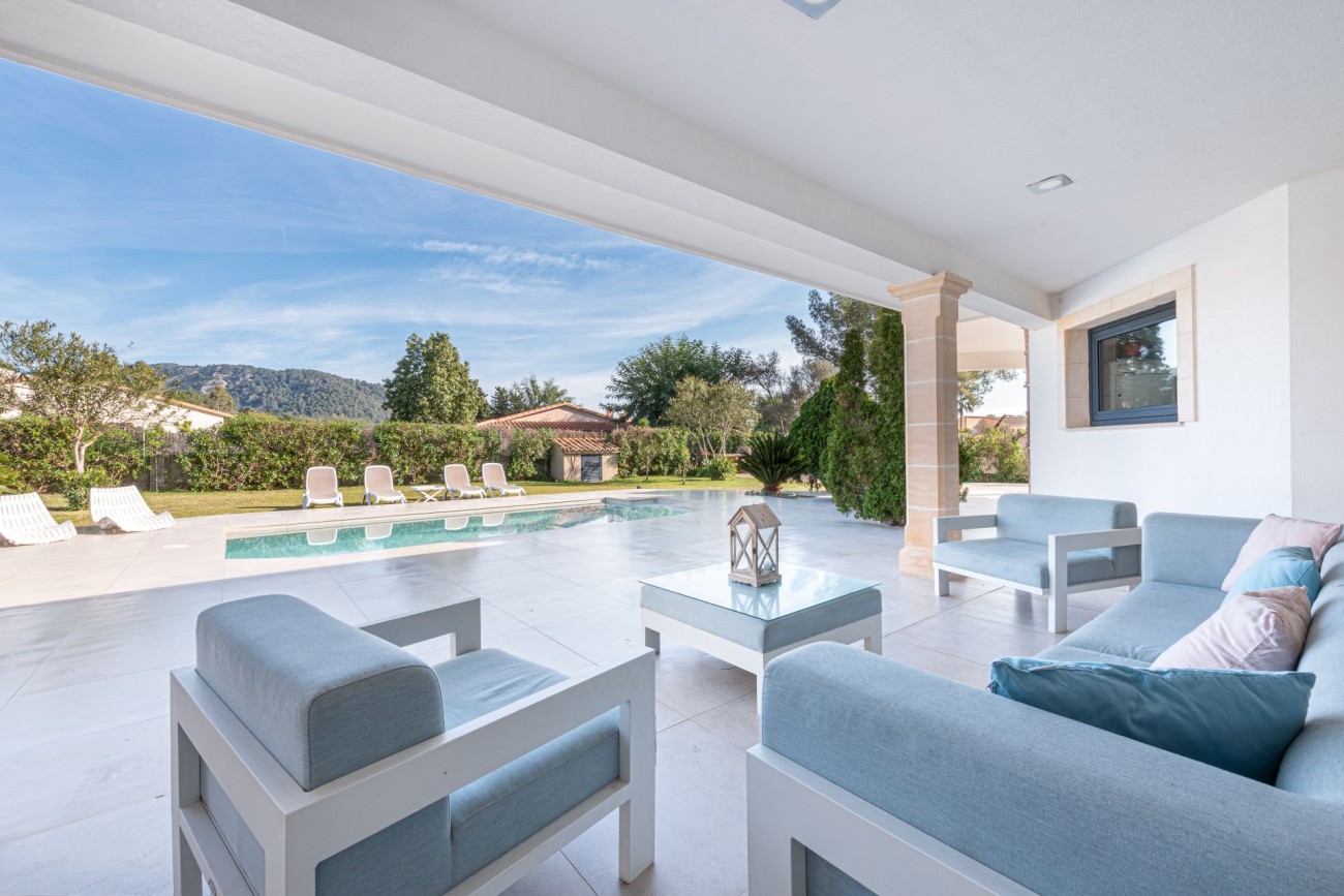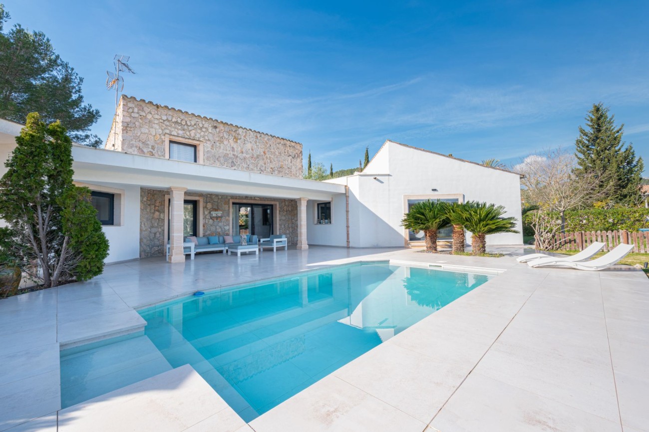 This spacious contemporary villa for sale near Pollensa offers an exceptional opportunity to enjoy Mediterranean living or invest in a fantastic holiday rental property. Located in the quiet residential area of Crestatx, the villa sits on a fully fenced 2,000 m² plot with a private swimming pool, just 7 km from Pollensa and 13 km from Alcudia.