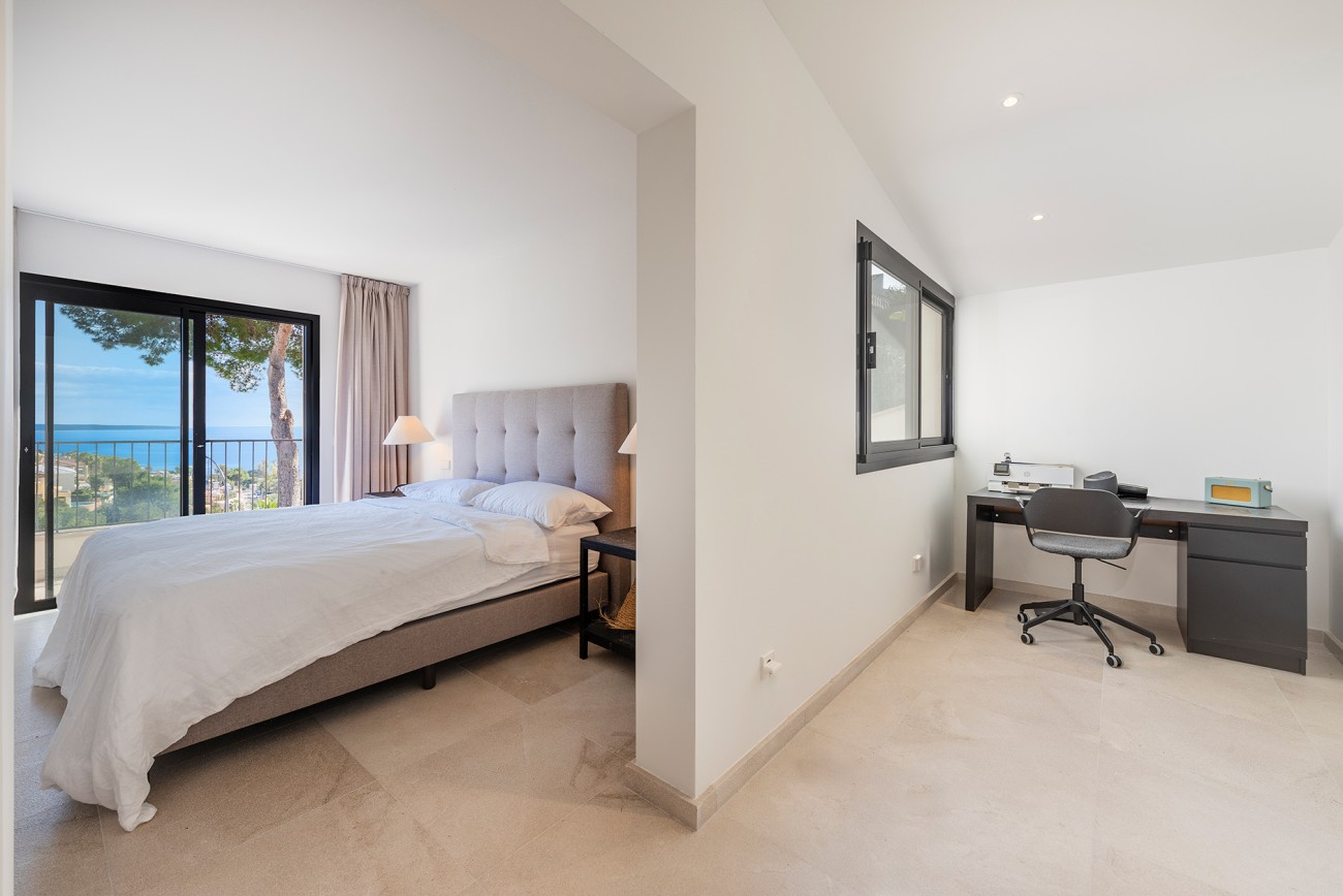 Deze villa wordt te koop aangeboden in een exclusieve woonwijk van Costa d’en Blanes, net boven de elegante jachthaven van Puerto Portals; het heeft royale zonnige terrassen, ongeëvenaard uitzicht over de baai en ligt op slechts 5 minuten rijden van de stranden, boetiekjes en restaurants.