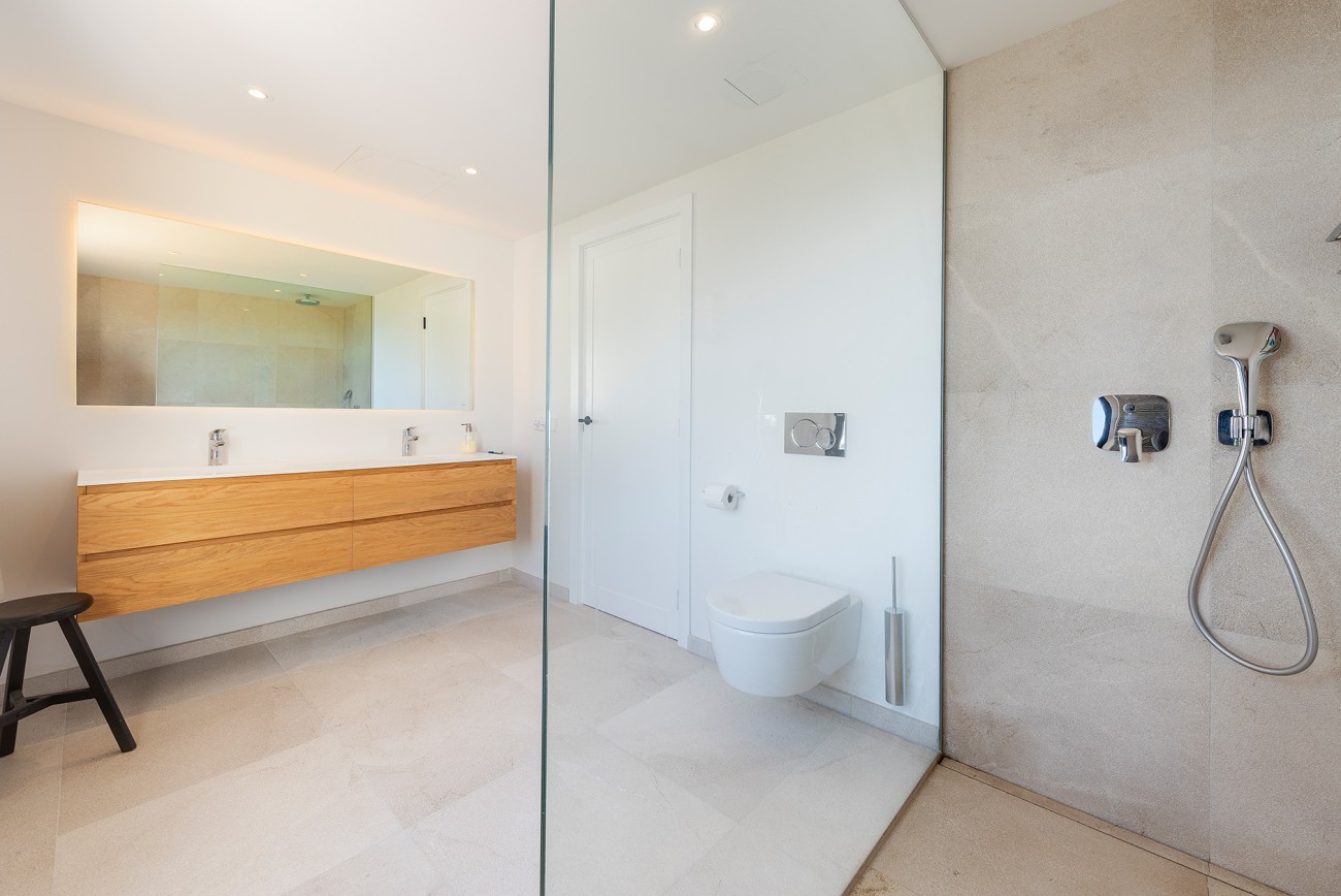 De villa is zeer ruim met kamers verdeeld over twee verdiepingen, het heeft in totaal vier slaapkamers (drie met toegang tot het terras) en drie badkamers, een ingerichte keuken en er is een open woon/eetkamer met prachtig uitzicht.