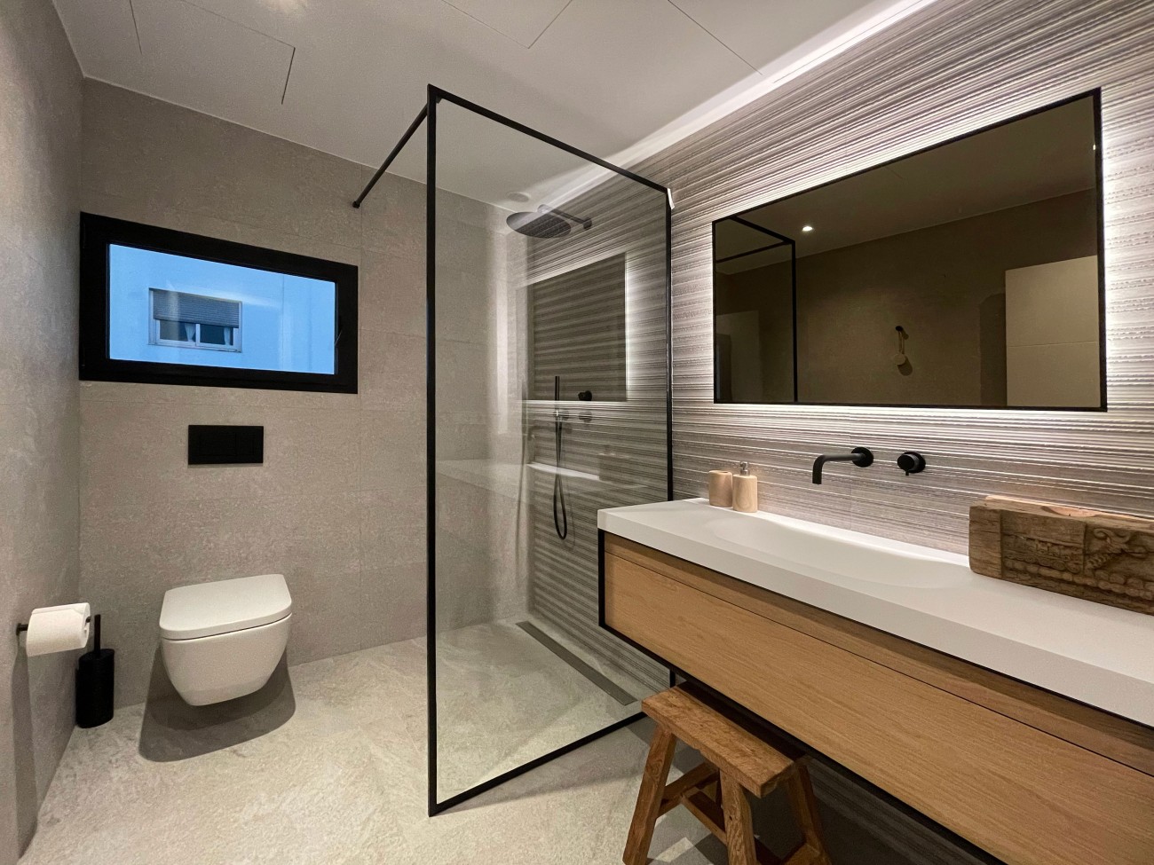 De villa beschikt over vier ruime slaapkamers, elk met een eigen en-suite badkamer, wat zorgt voor maximale privacy en comfort voor zowel familie als gasten. Een extra gastentoilet zorgt voor nog meer gemak. Royale woonkamers met grote ramen overspoelen het interieur met natuurlijk licht en bieden een sereen uitzicht op het omringende landschap.