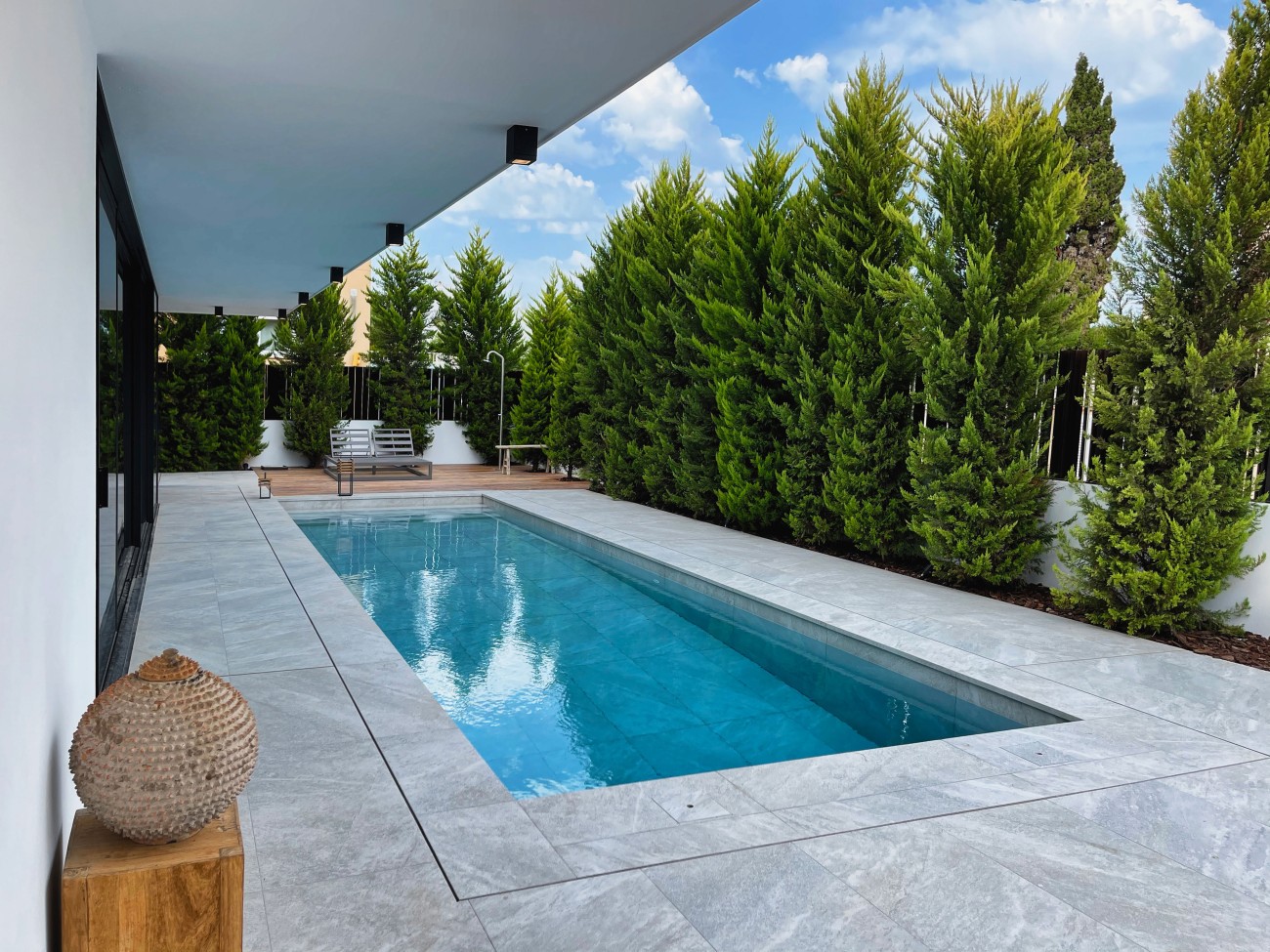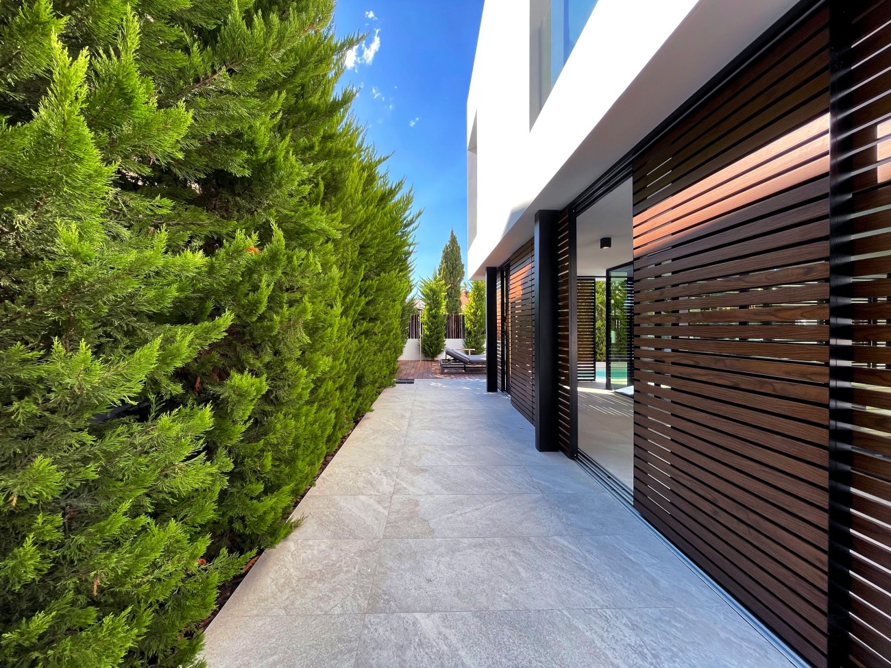 Buiten beschikt de villa over uitzonderlijke buitenruimtes, waaronder een privézwembad en prachtig ontworpen terrassen, ideaal om te genieten van de mediterrane zon of om elegante sociale bijeenkomsten te organiseren.