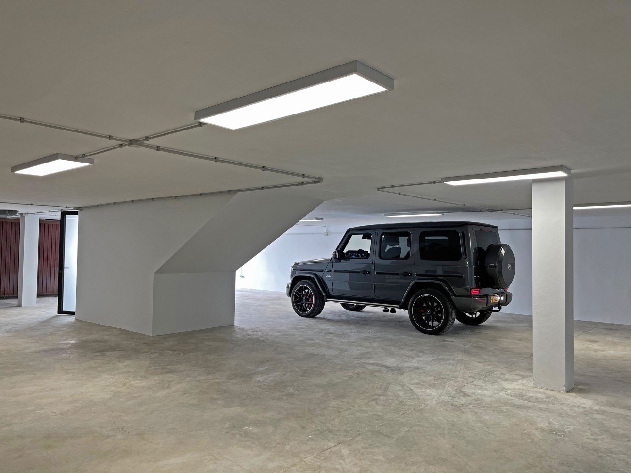 Een van de opvallende kenmerken is de grote garage, met 227 m² veelzijdige ruimte geschikt voor meerdere voertuigen, opslag of zelfs gebruik als creatieve werkplaats.